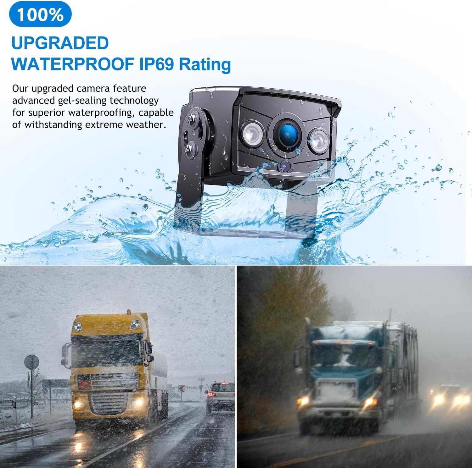 Upgrade Dual Backup Camera Monitor Kit 7 HD 1080P Monitor IP69 Waterproof Rearv