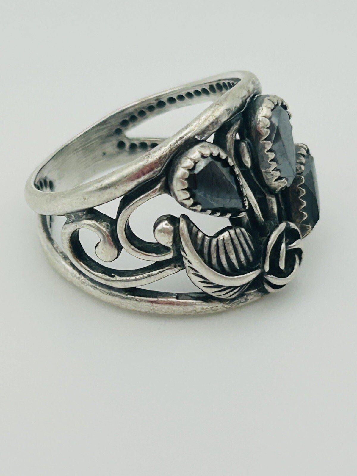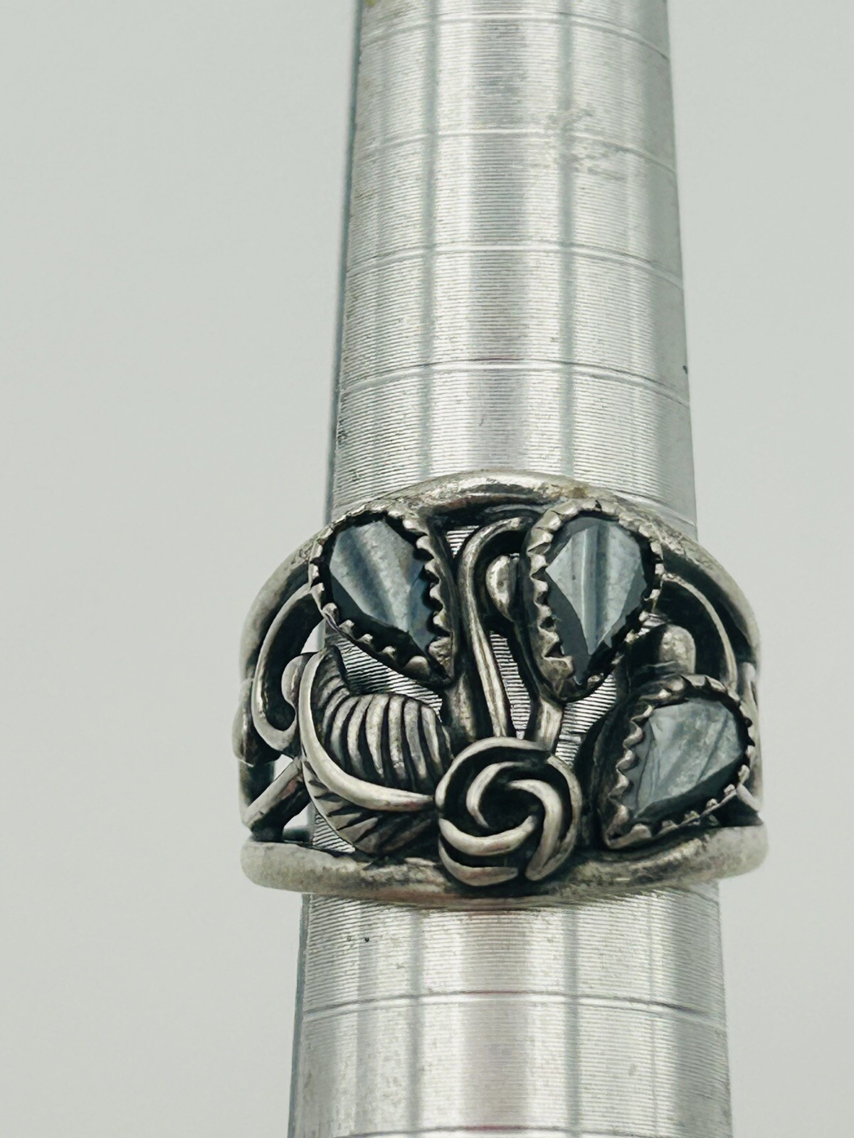 как выглядит Vintage 925 Solid Sterling Silver Ring Size 6 Floral Swirl Design Marked STER фото