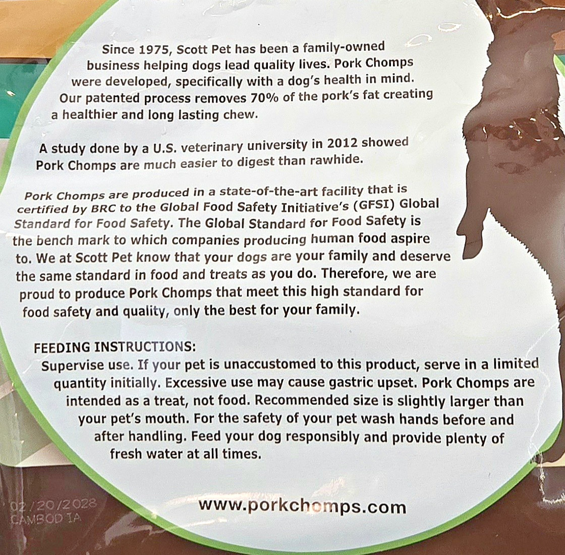 Pork Chomps Roasted Pork Skin Dog Chews 15 Count 6-Inch Twists