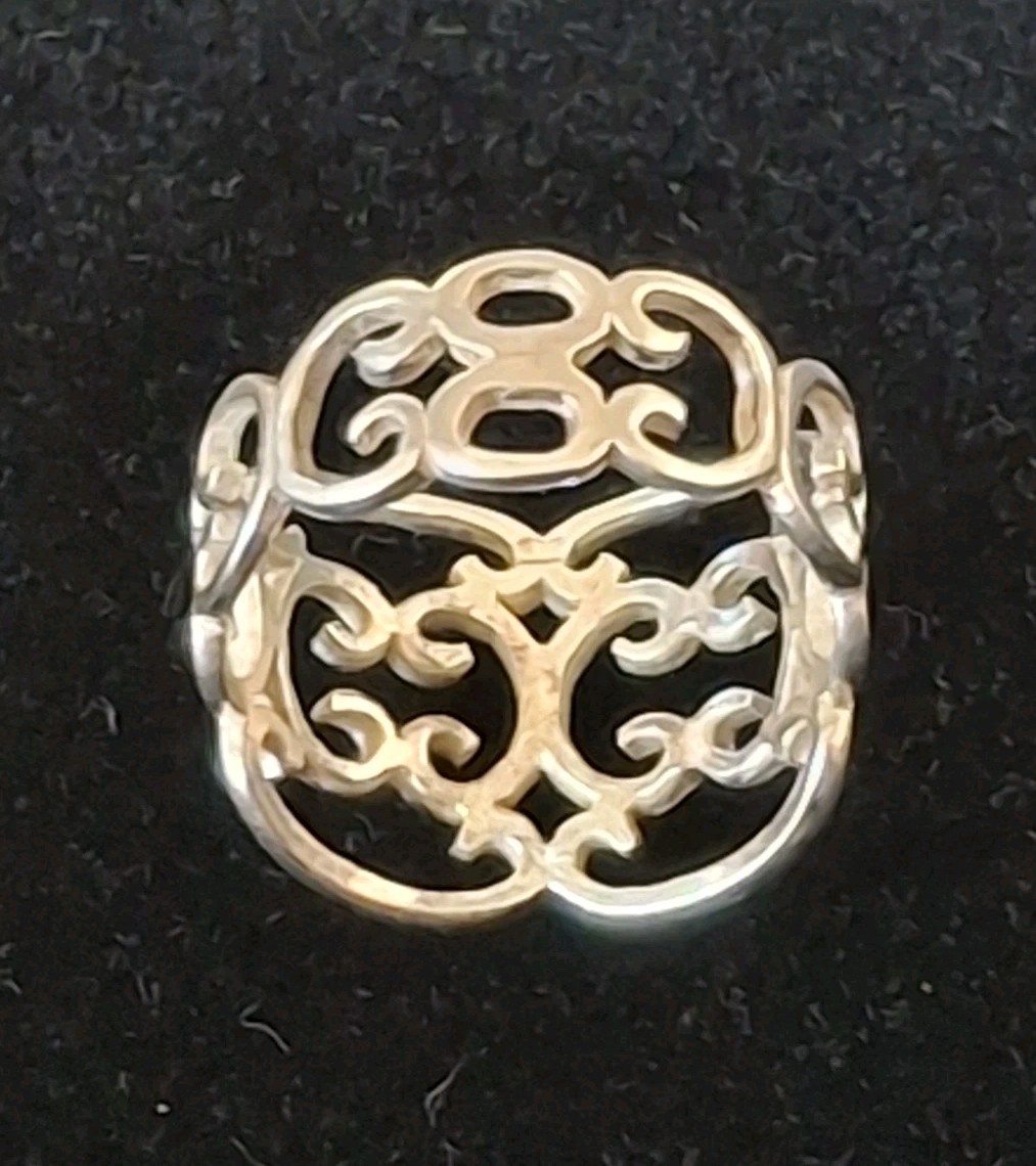 как выглядит Vintage Signed 925 Sterling Silver Ring Scroll Curve Wide Band 3 Grams SZ 7.5 фото