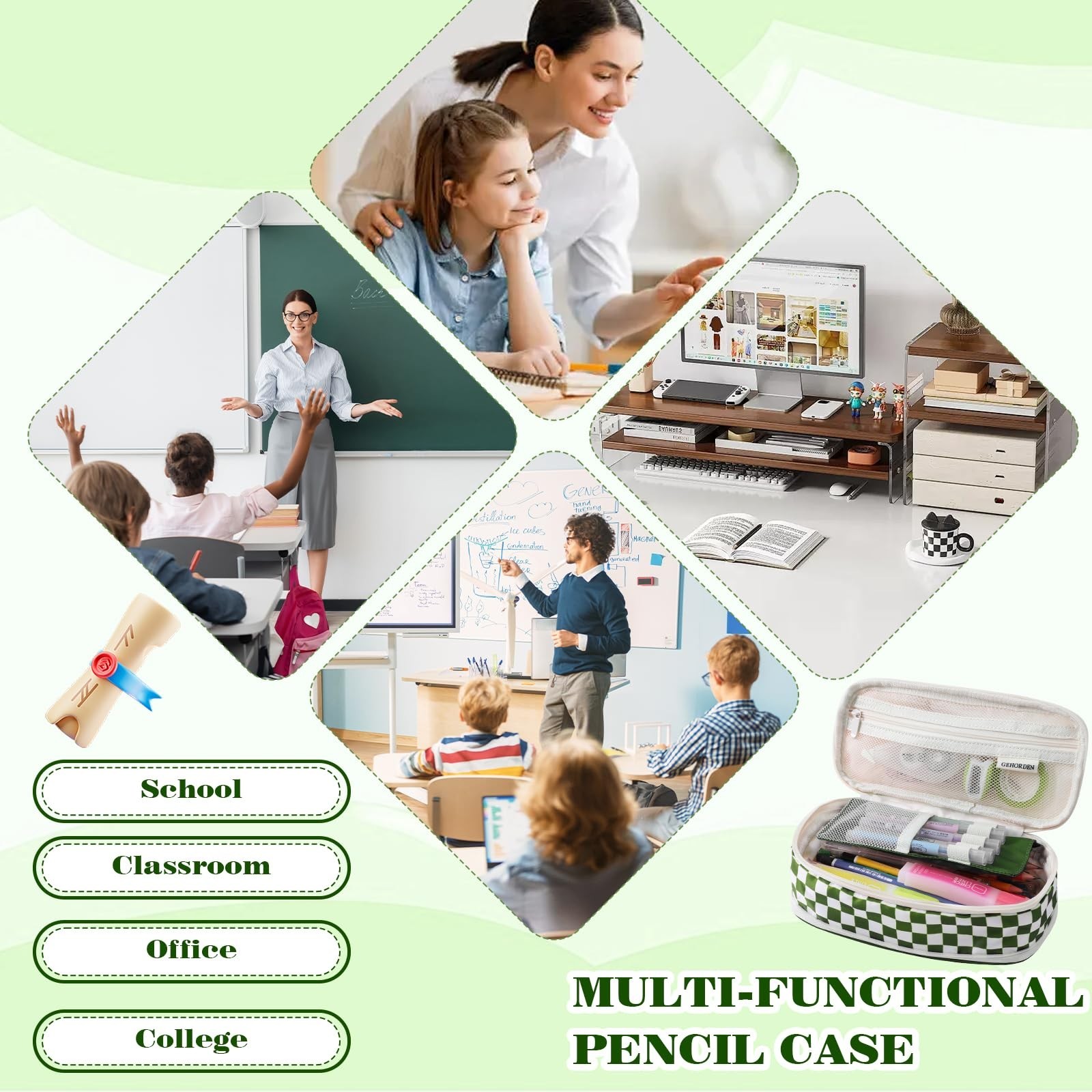 Checkered Pencil Pouch With Zipper Pencil Case for Teens Girls Student Back t...