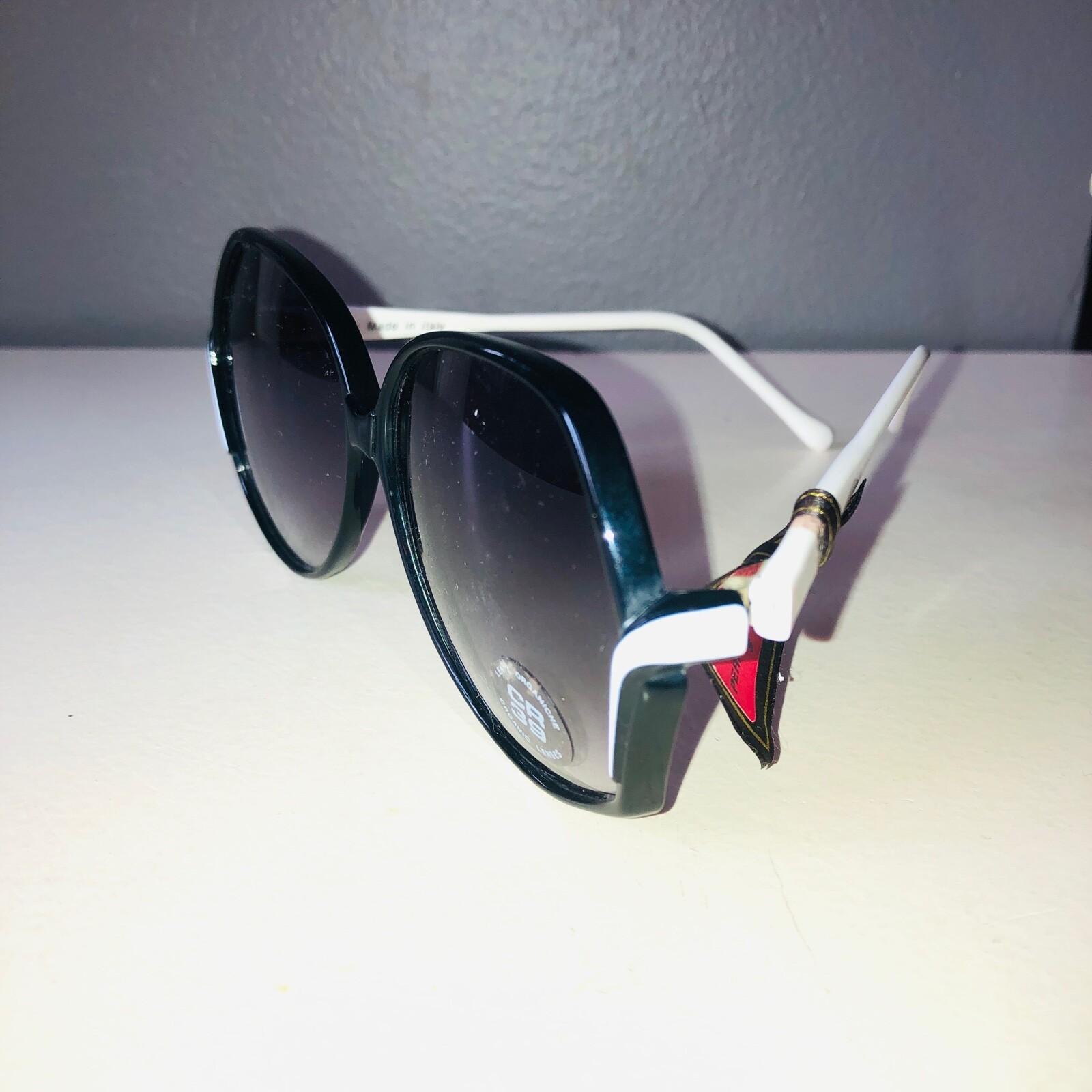 NOS VTG 80'S EUROPEAN EYES SUNGLASSES BUTTERFLY PLASTIC FRAME CLEAR BLACK WHITE