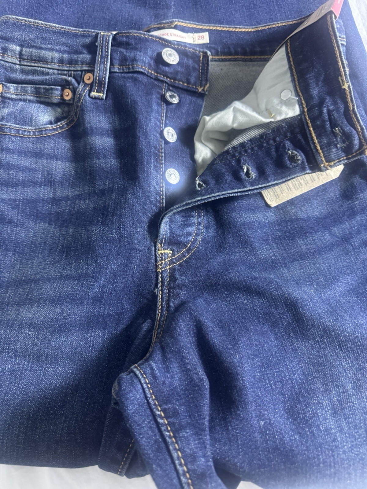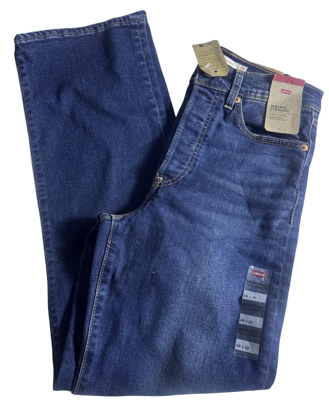 Levi s Ribcage Straight Jeans Womens 28x32 Blue High Rise NWT New