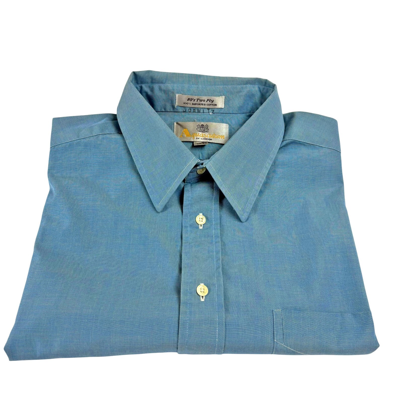 Aquascutum of London Blue 80s Two Ply Cotton Button Down Shirt Mens Size 16 1/2