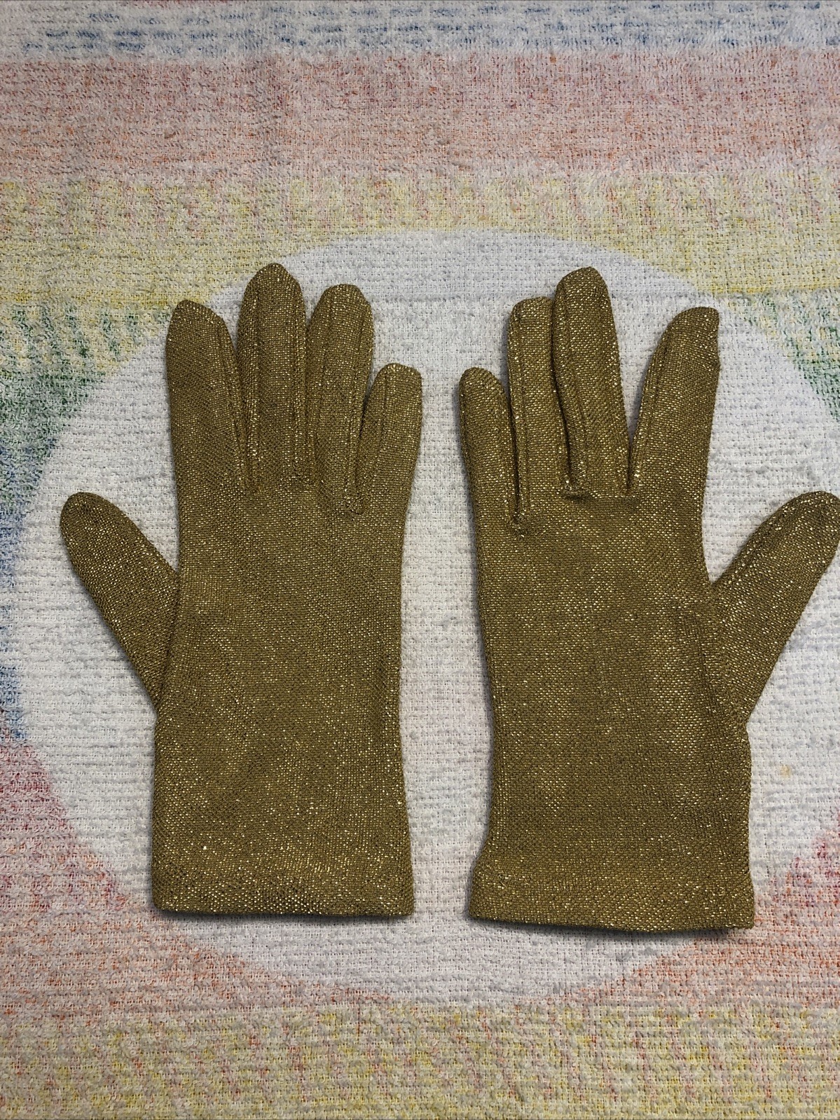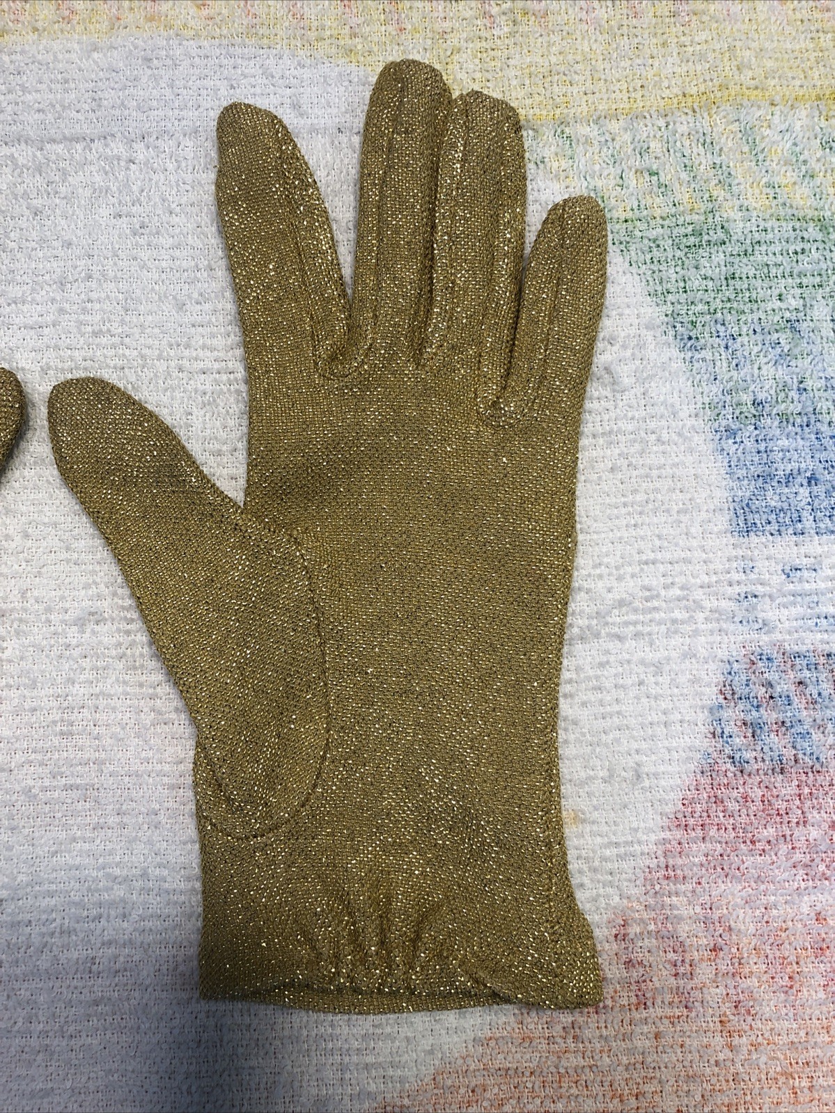 как выглядит Metallic Gold Ladies Cocktail Gloves Small Size 6.5 Glam Vintage Formalwear фото