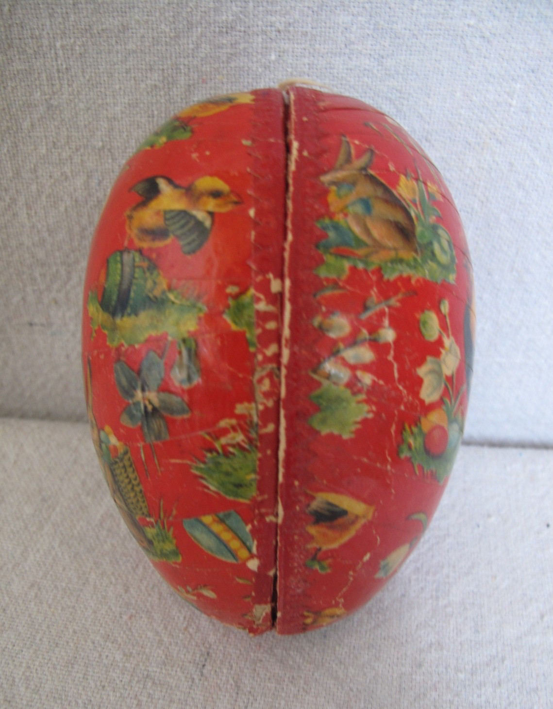Antique German Paper Mache 4 long Easter Egg Candy Container Bunny Chickens