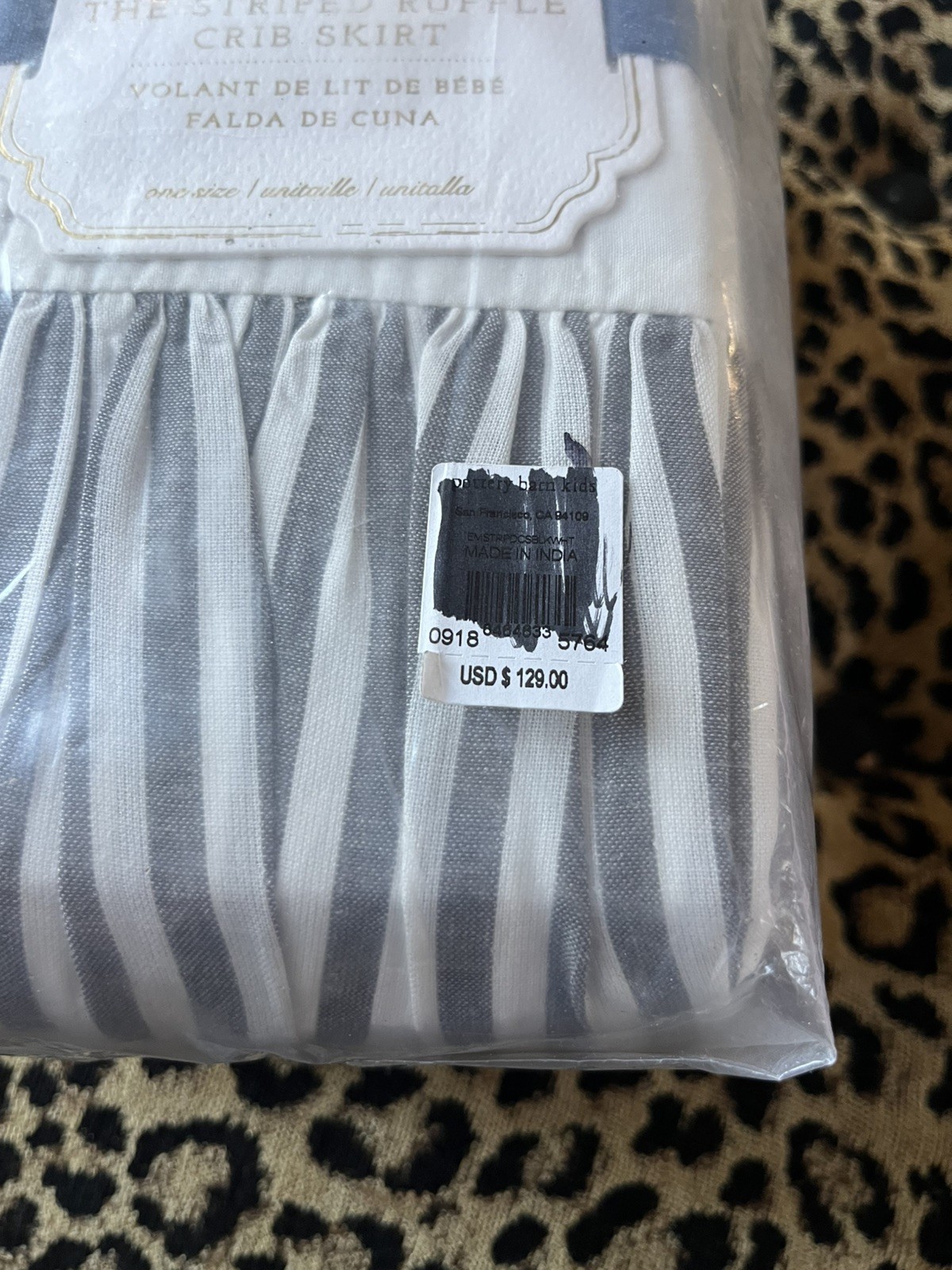 как выглядит Pottery Barn Kids Emily Meritt Striped Ruffle Crib Skirt Light Black White NWT фото