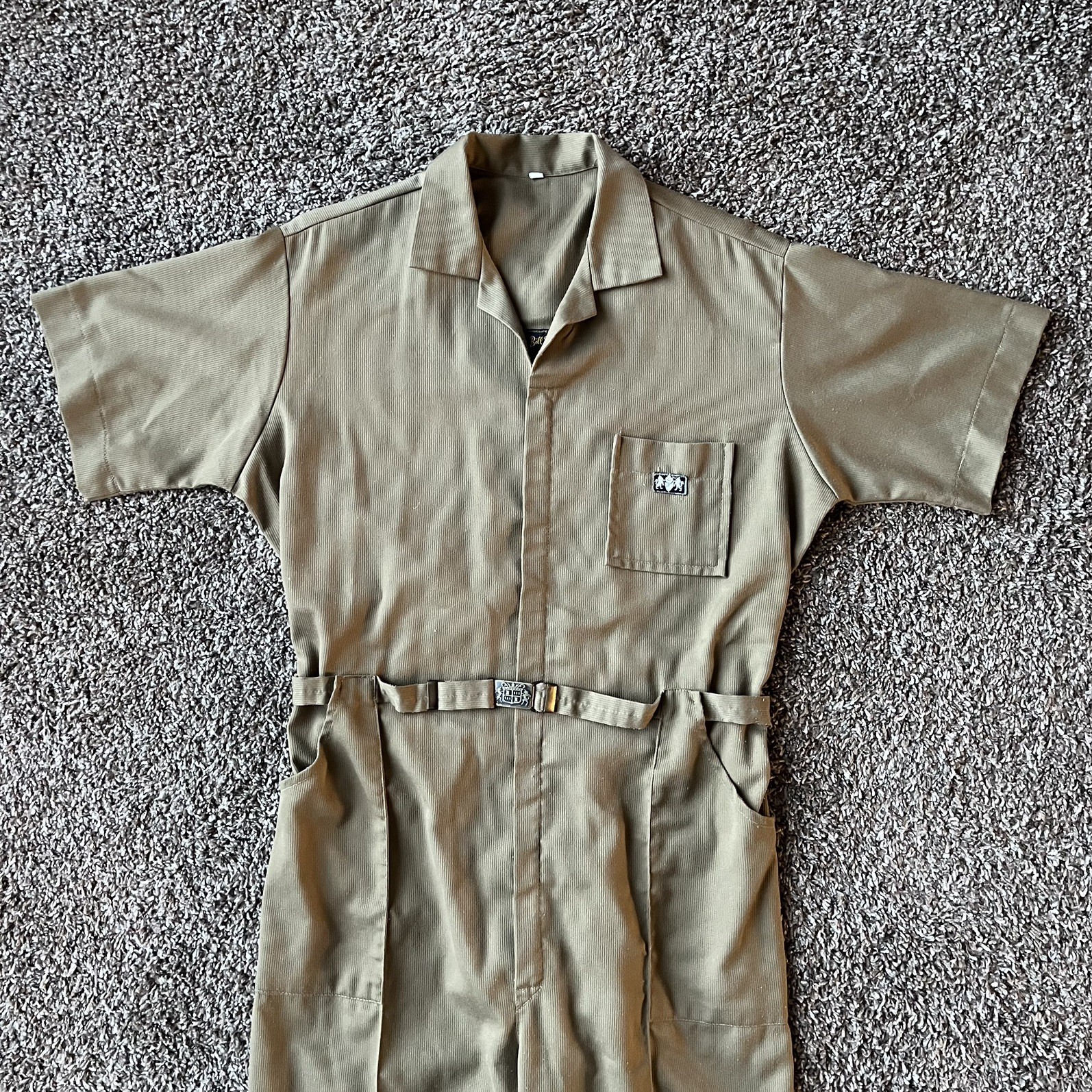 как выглядит Vintage 60s 70s Bill Parry Pasadena Olive Green Belt Jumpsuit Coveralls Large фото