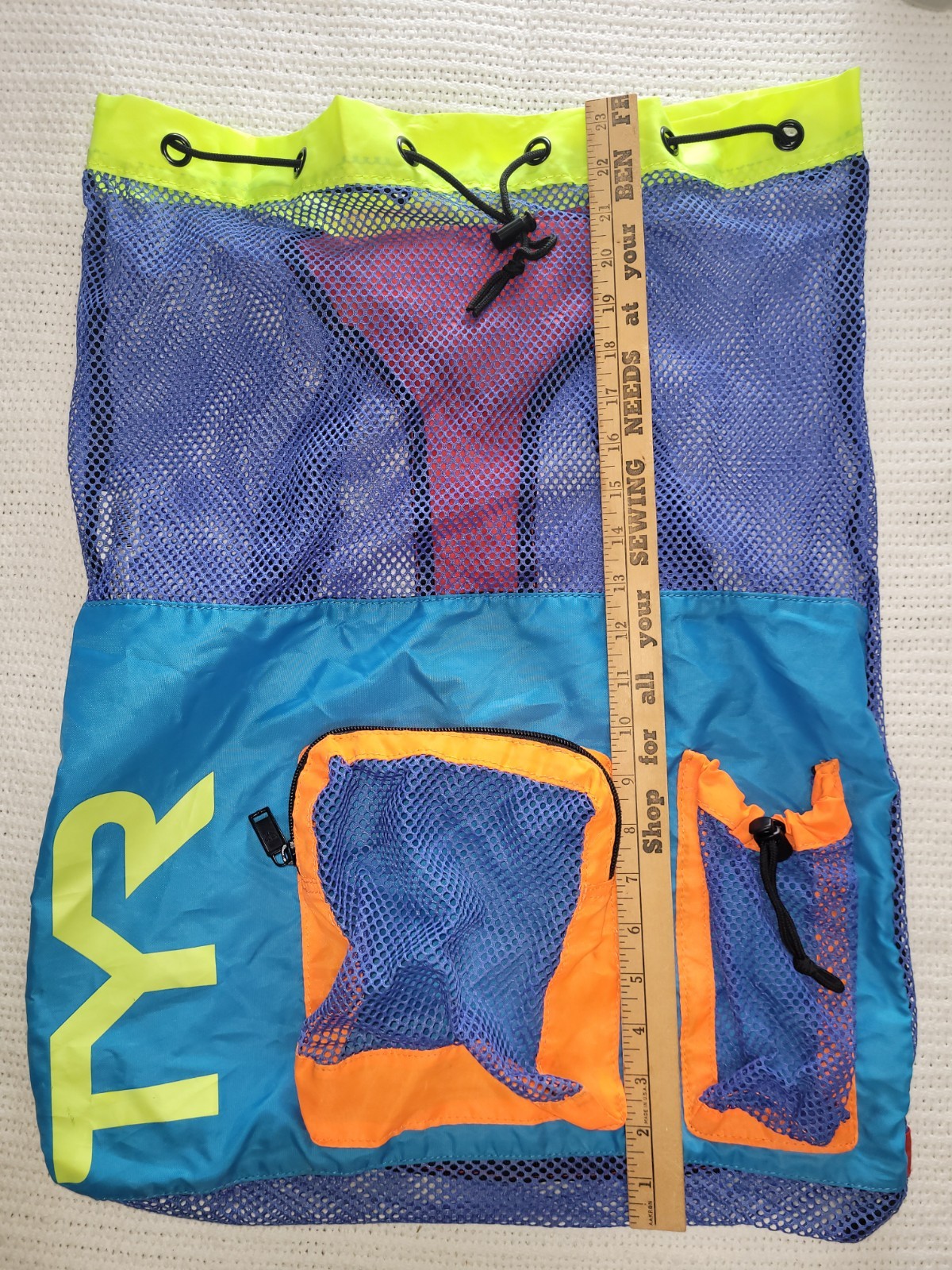 TYR Big Mesh Backpack Swimming Soccer Ball Gym Zip Pockets and Drawstring Bag