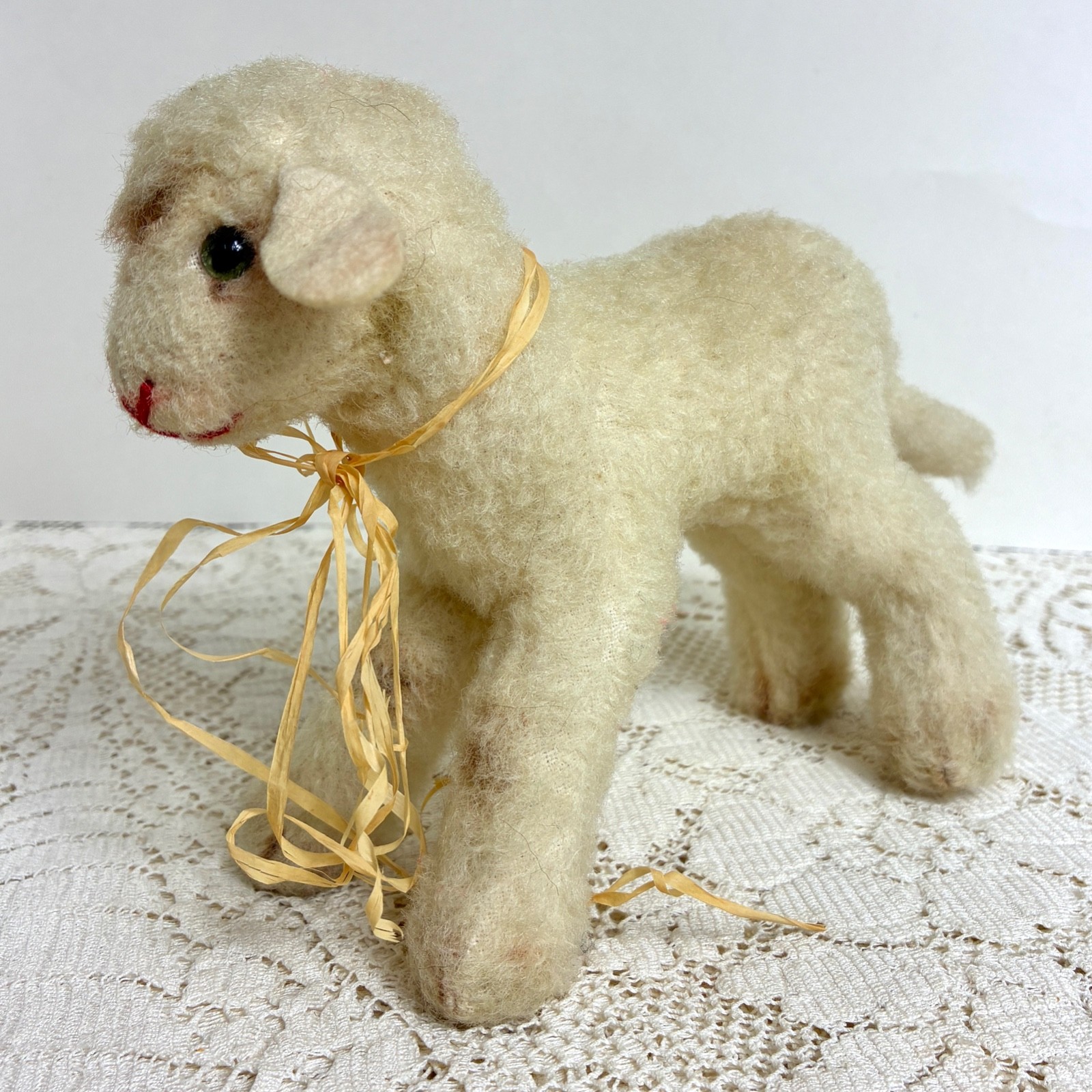Vintage Steiff Easter Lamb Standing Lamby 60s White Wool Plush Baby Farm Animal