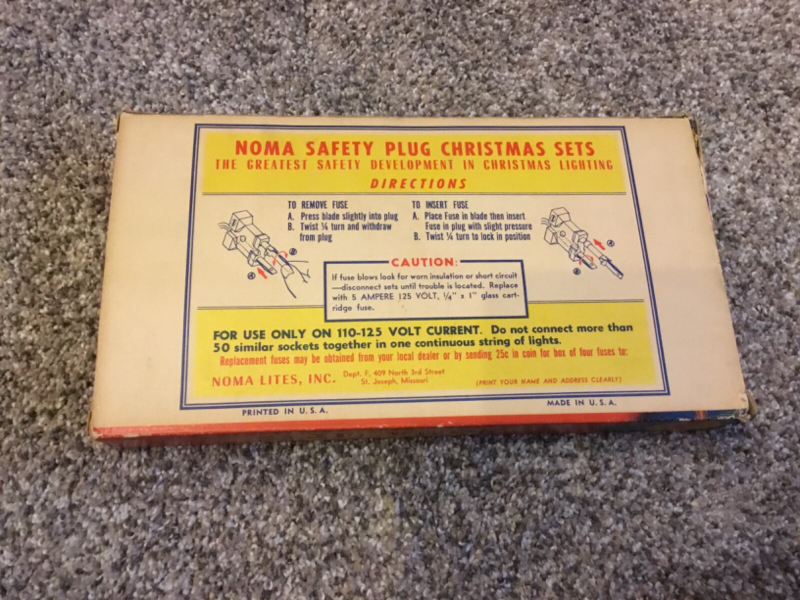 • Vintage Noma Christmas Lights 7 Lite String With Safety Plug Original box