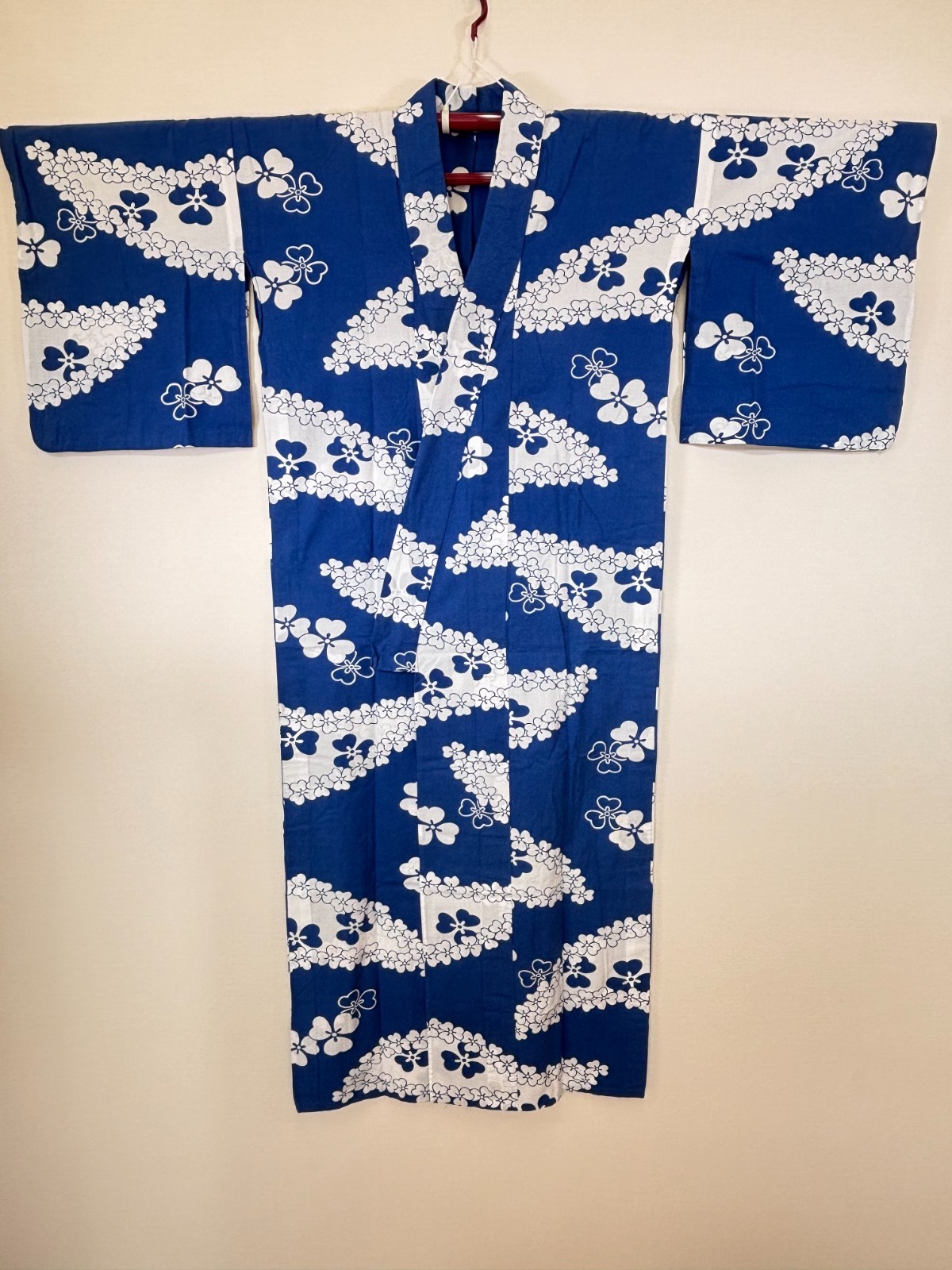 • Vintage Japanese Yukata Kimono Indigo Blue White Floral Cotton Summer Robe 59"