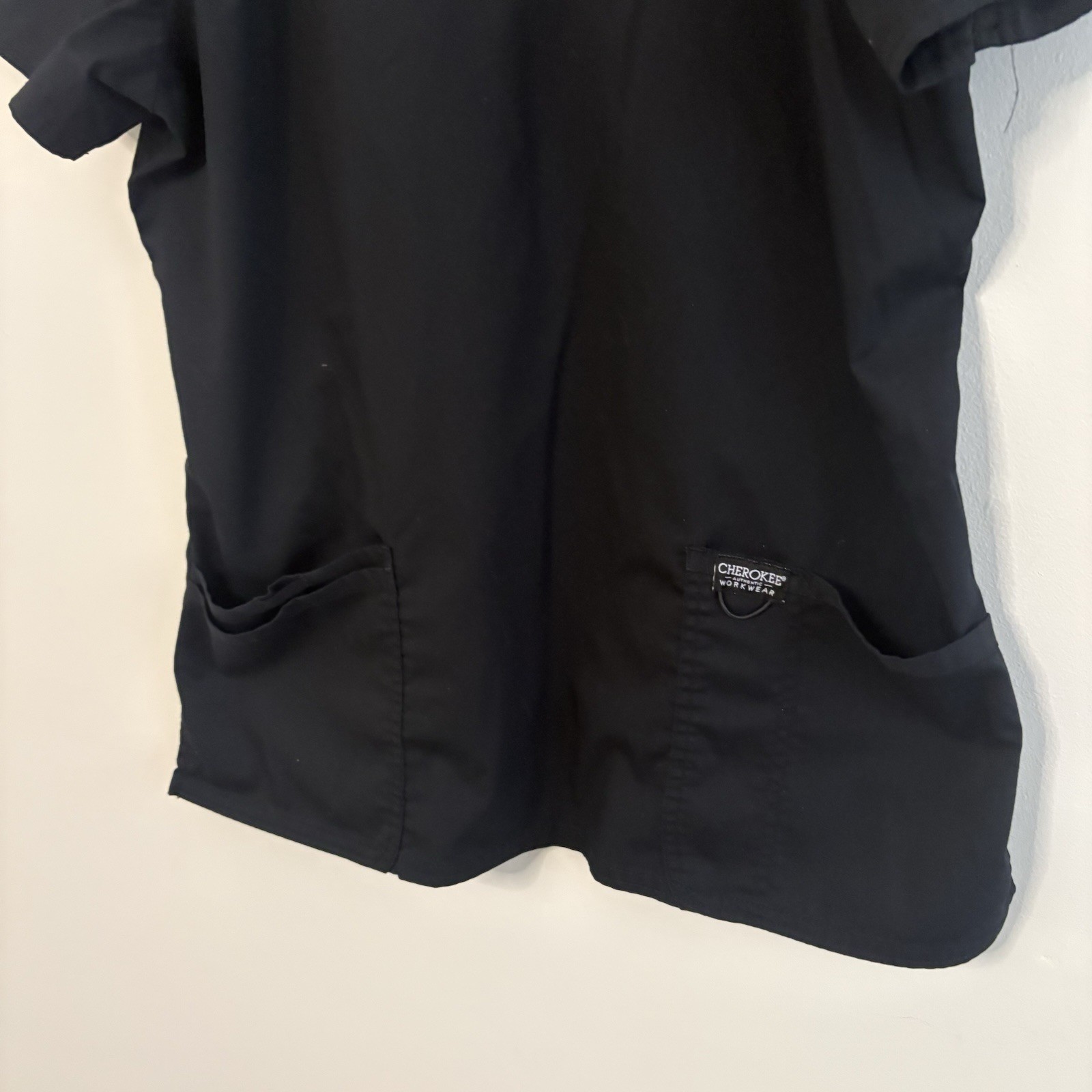 Cherokee Workwear Women s Large Black Medical Scrub Top Healthcare Pockets A7