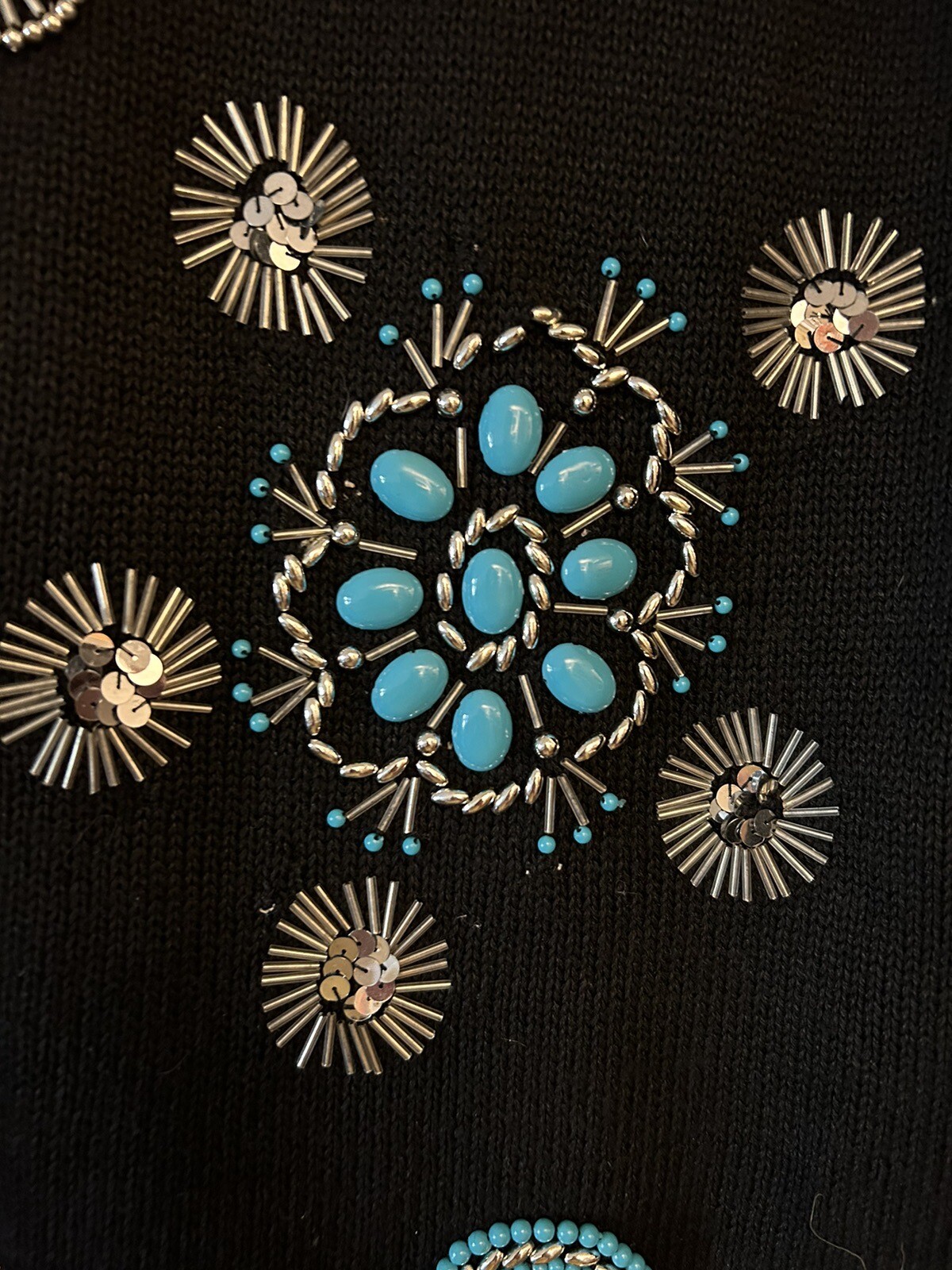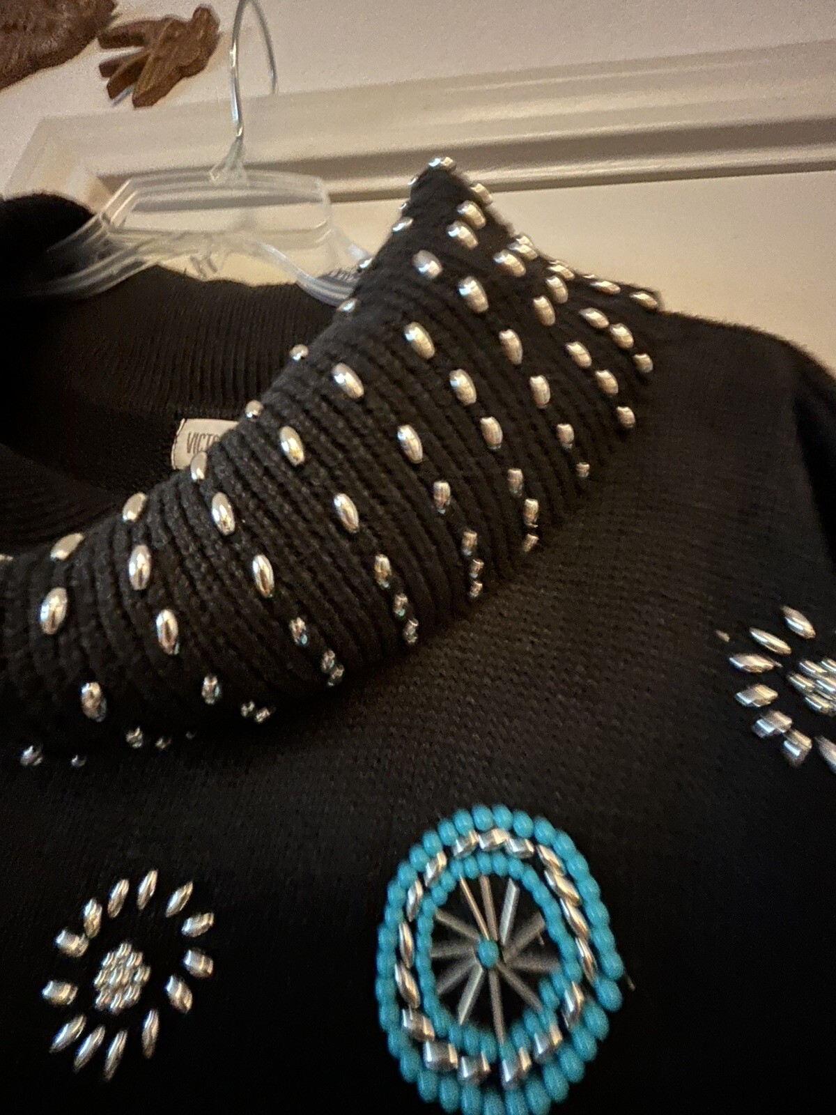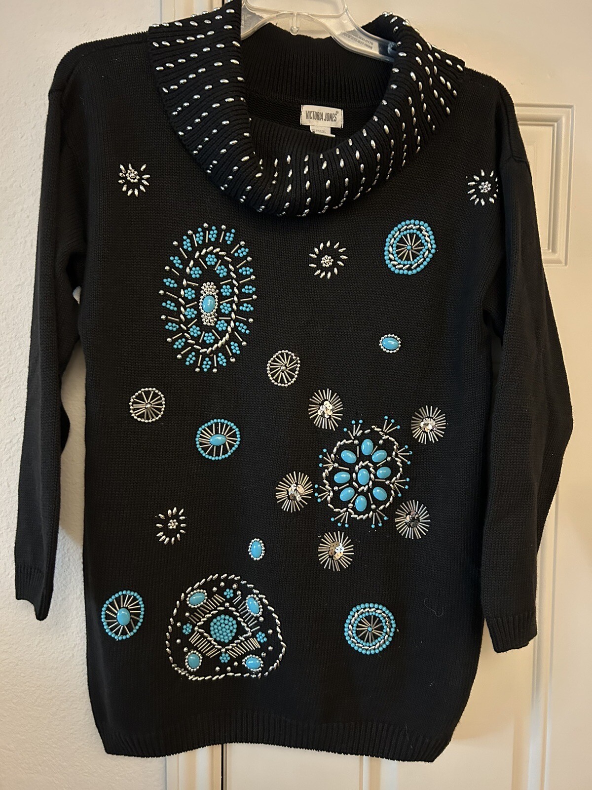 как выглядит Vintage Victoria Jones Beaded Southwestern Tunic Sweater Womens Small Black фото