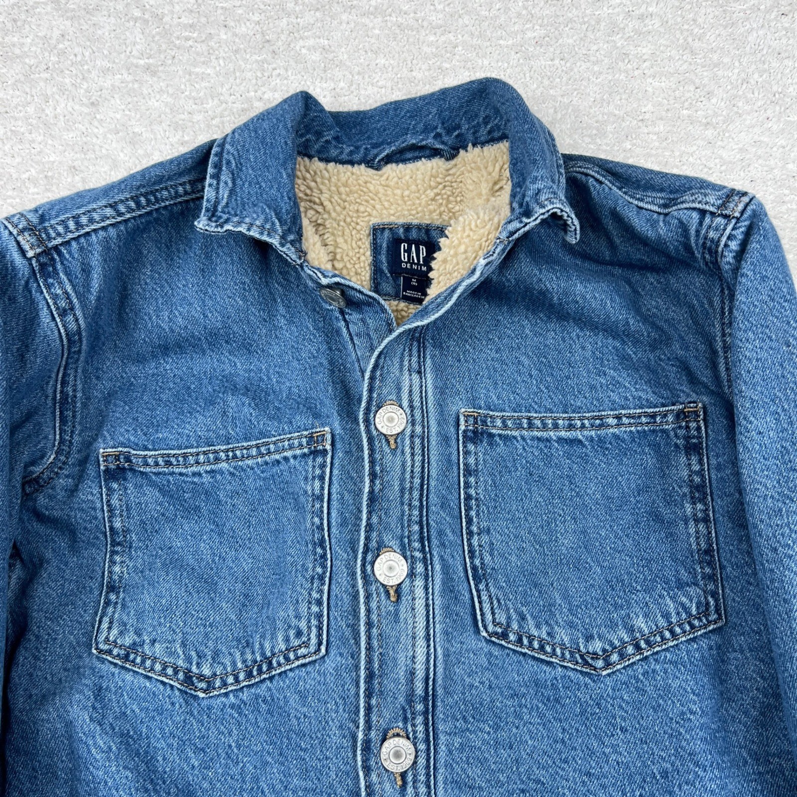 Gap Kids Boys Medium Wash Sherpa Lined Denim Trucker Jacket Blue Size M 8