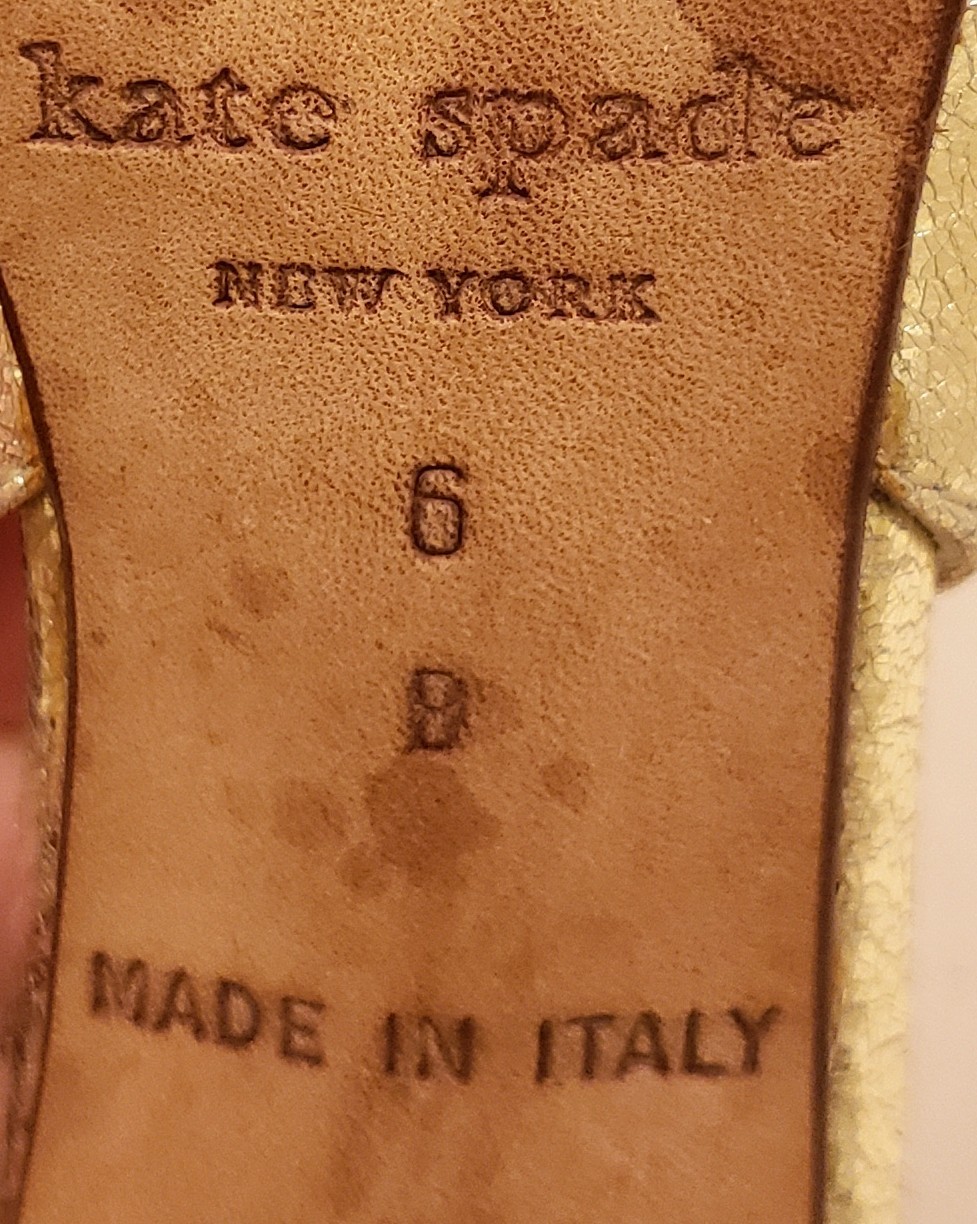 Kate Spade Slingback Heel Shoes Size-6B Gold Metallic Leather Made in Italy