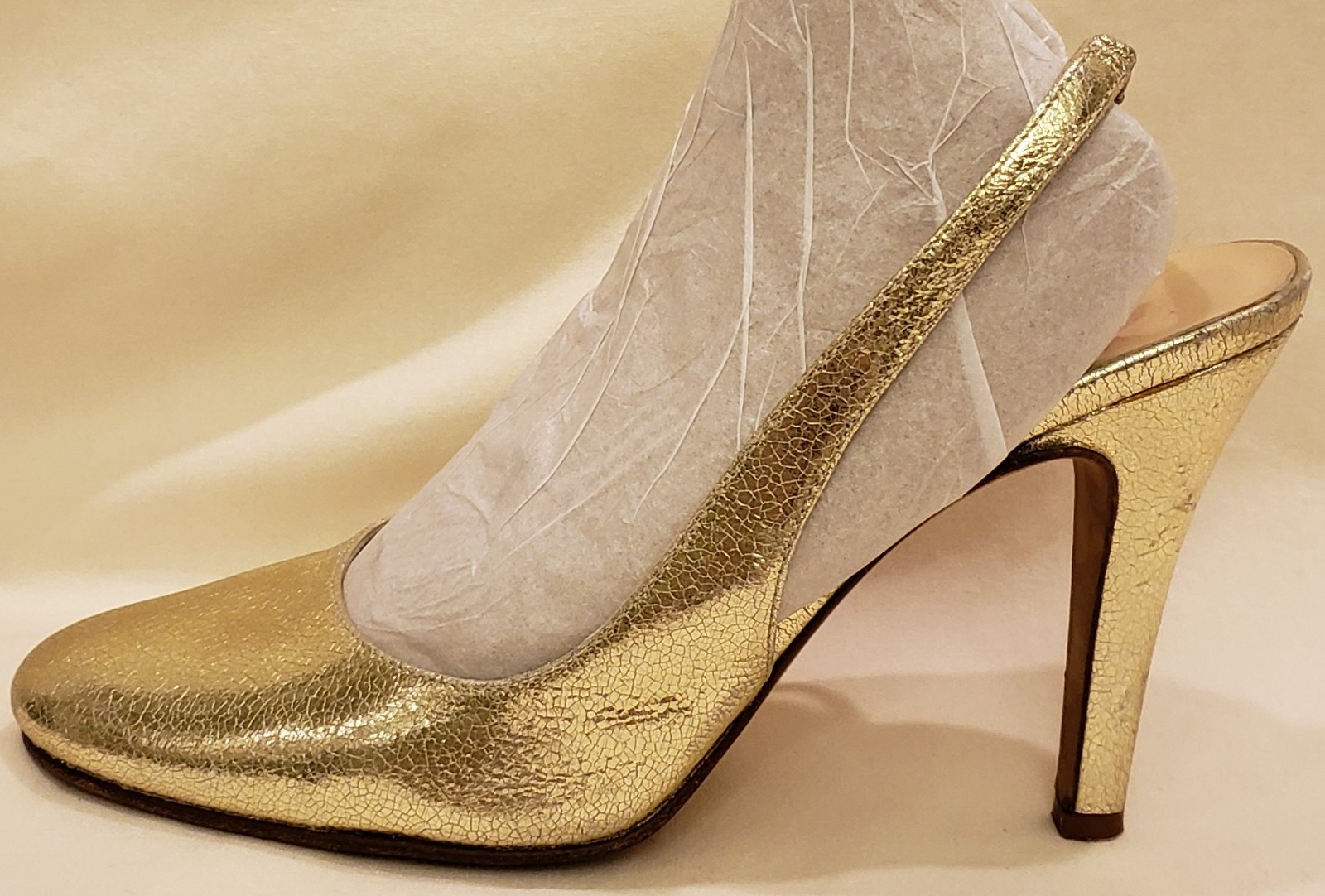 как выглядит Kate Spade Slingback Heel Shoes Size-6B Gold Metallic Leather Made in Italy фото