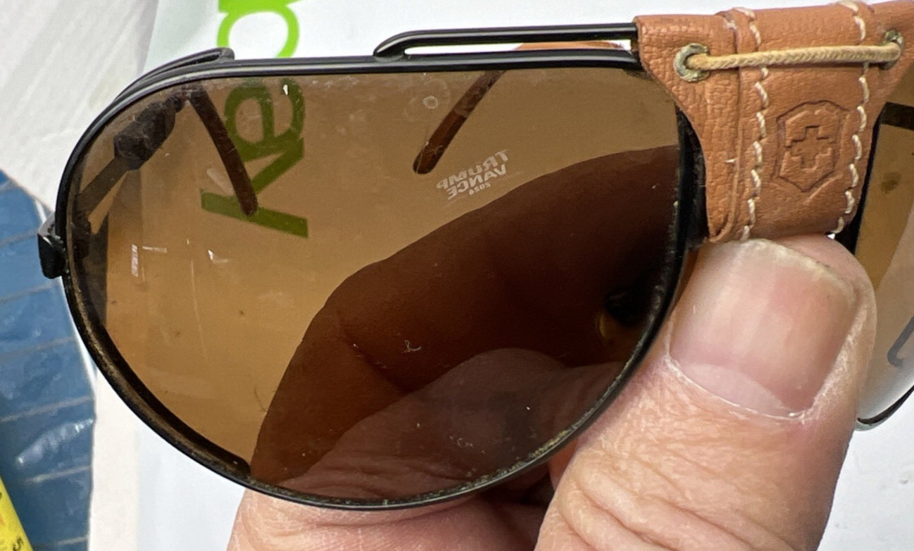 как выглядит Vintage Swiss Army Brand Aviator Sunglasses W/Leather Trim and original Holder фото