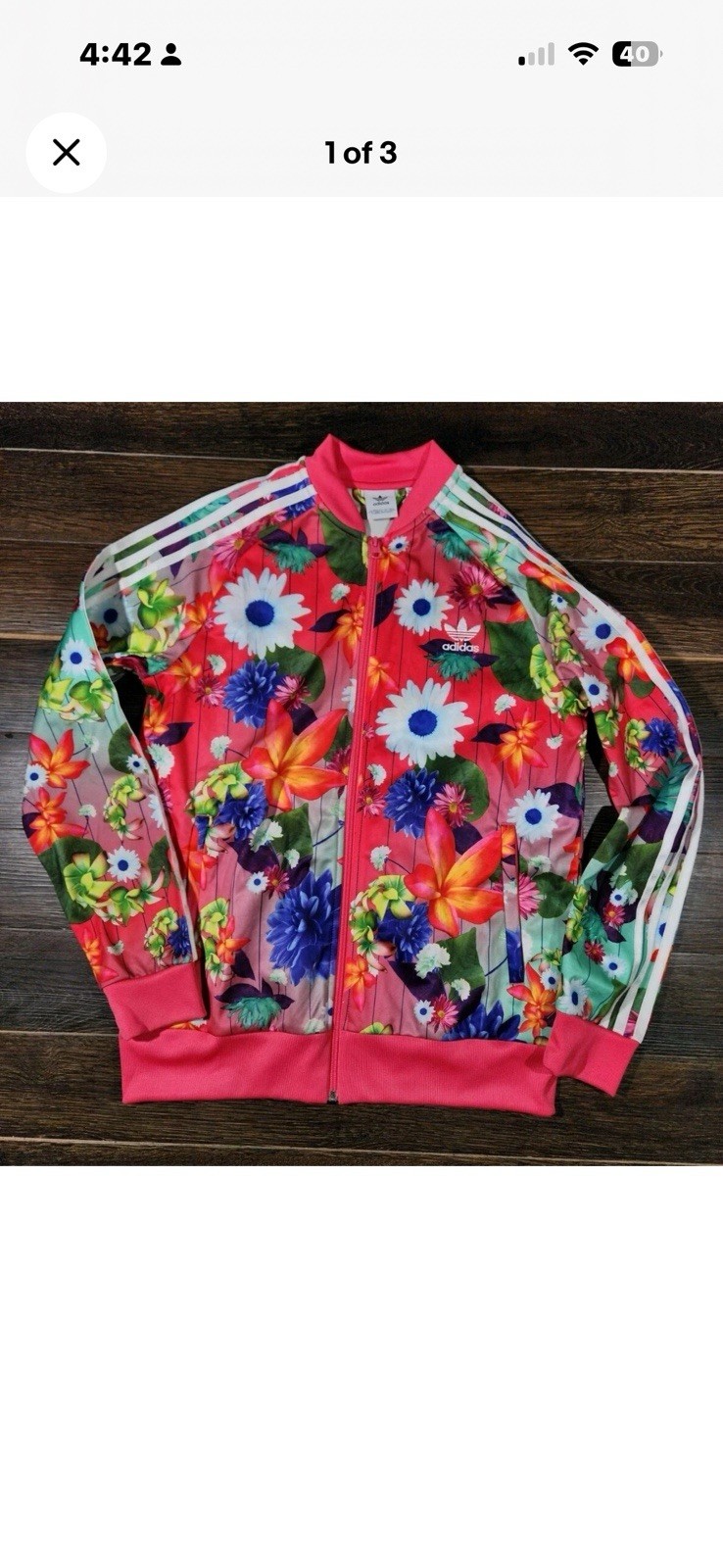 как выглядит Youth Sz XL 14-15 youth Adidas Originals Track Jacket Floral Full Zip Trefoil фото