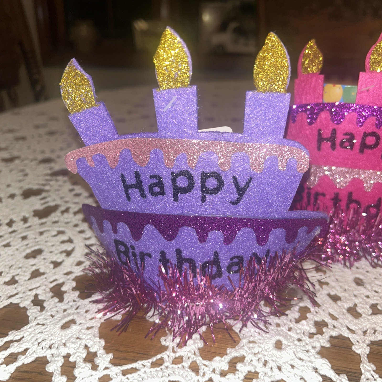 Lot of 5 Happy Birthday Tiara Pink Purple Felt Crowns For Little Girls New