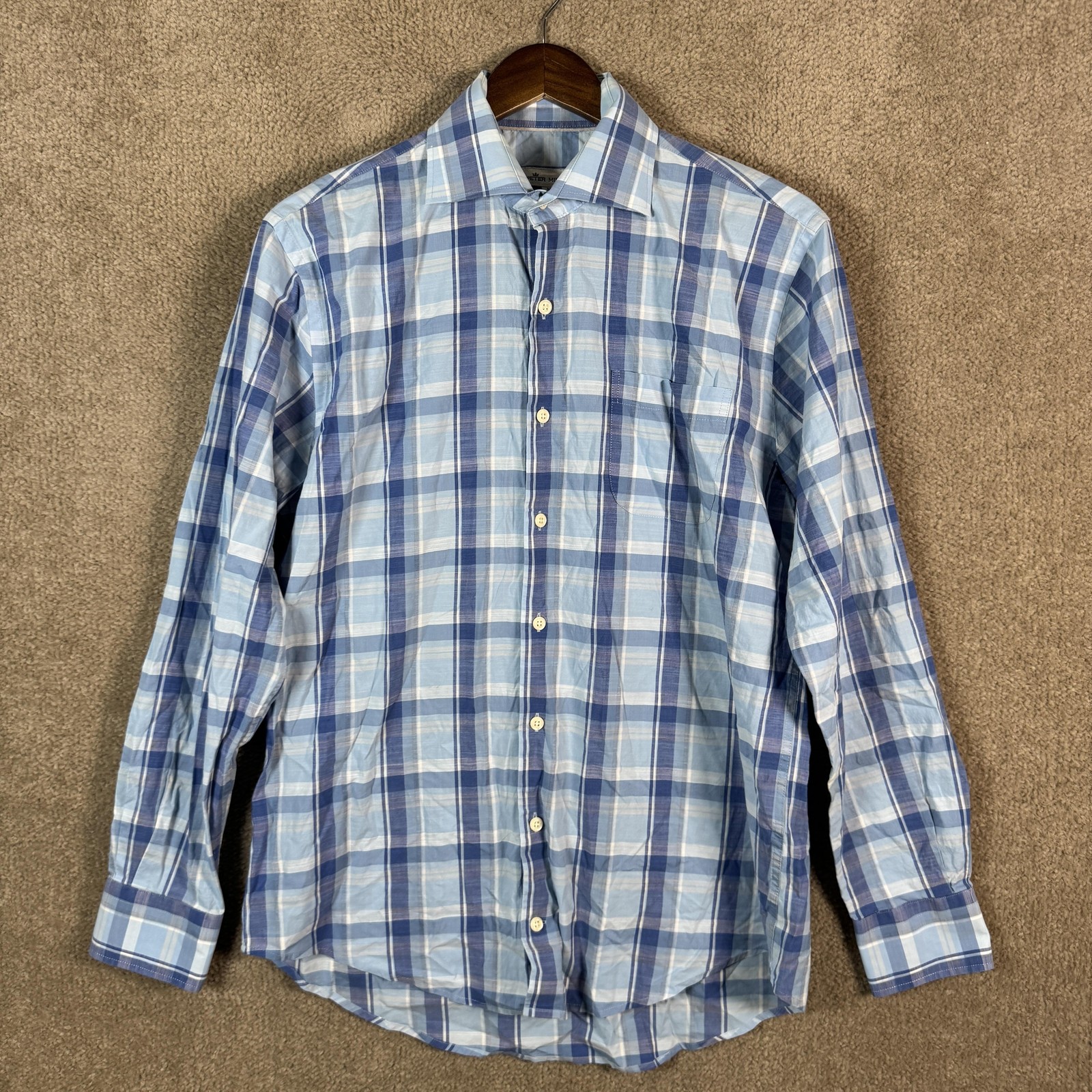 как выглядит Peter Millar Shirt Mens Medium Blue Plaid Long Sleeve Stretch Non Iron Button Up фото
