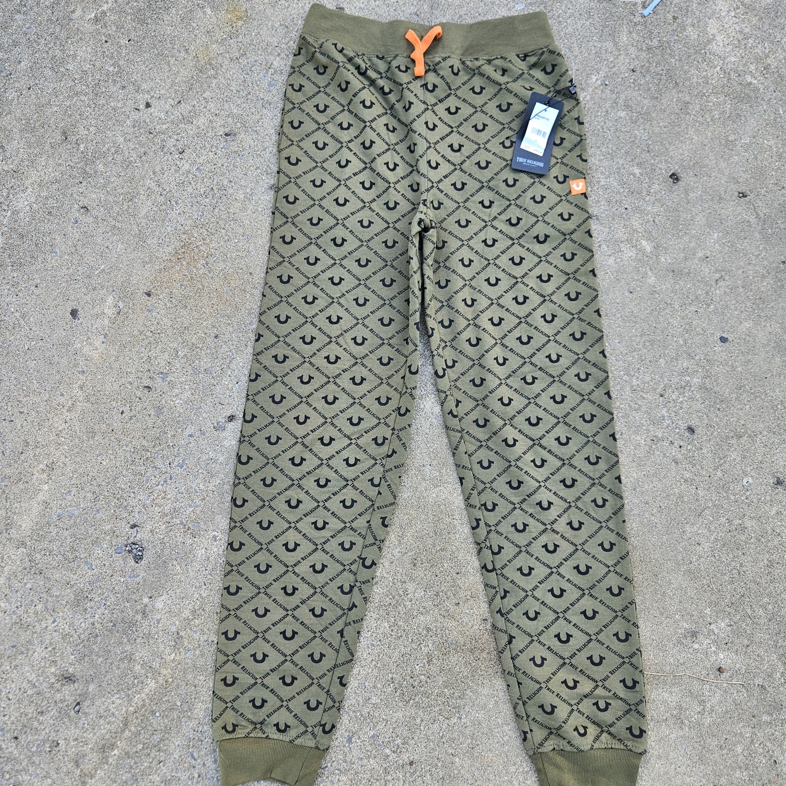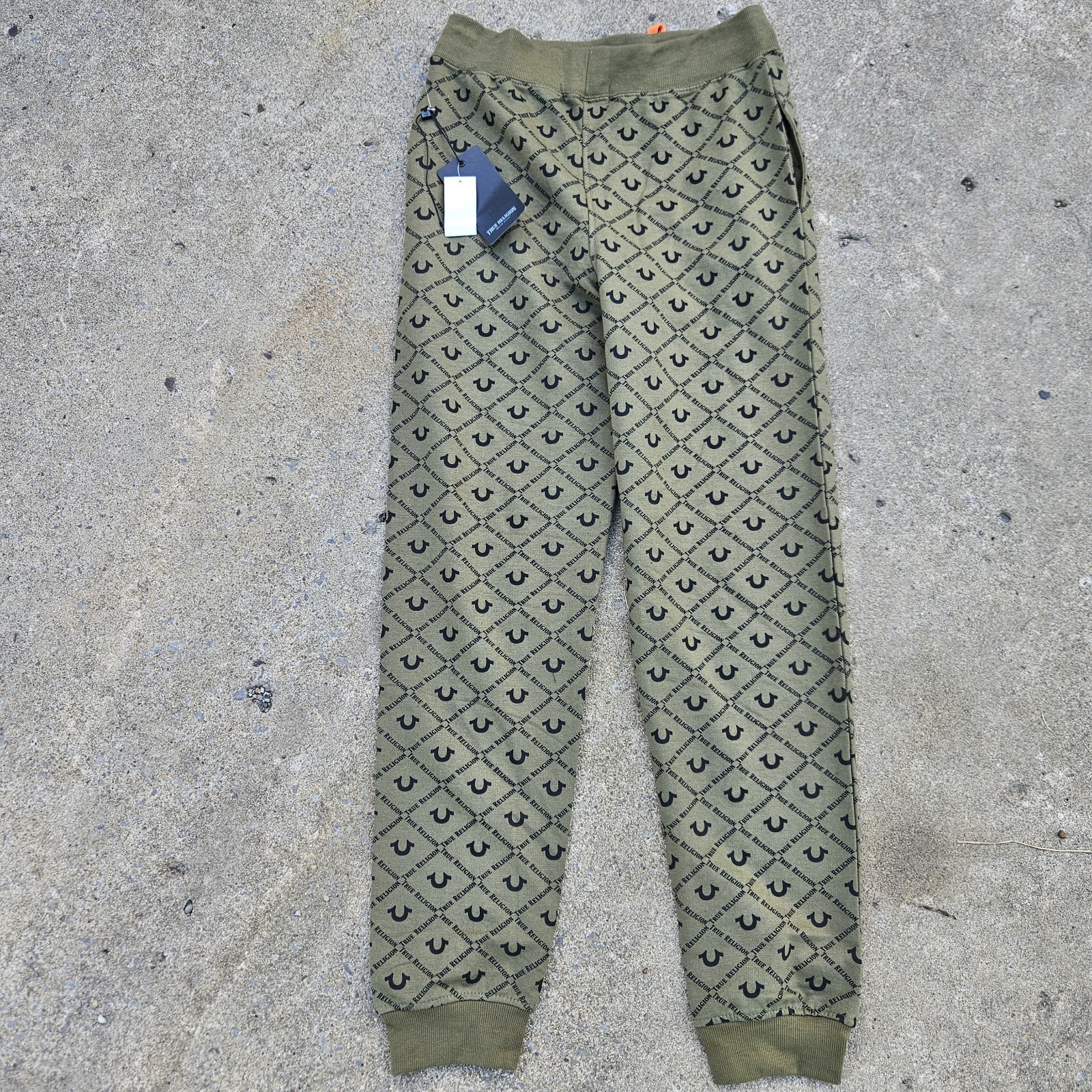 NWT True Religion Logo Print Jogger Pant Mens Size Large Olive Green Sweatpants