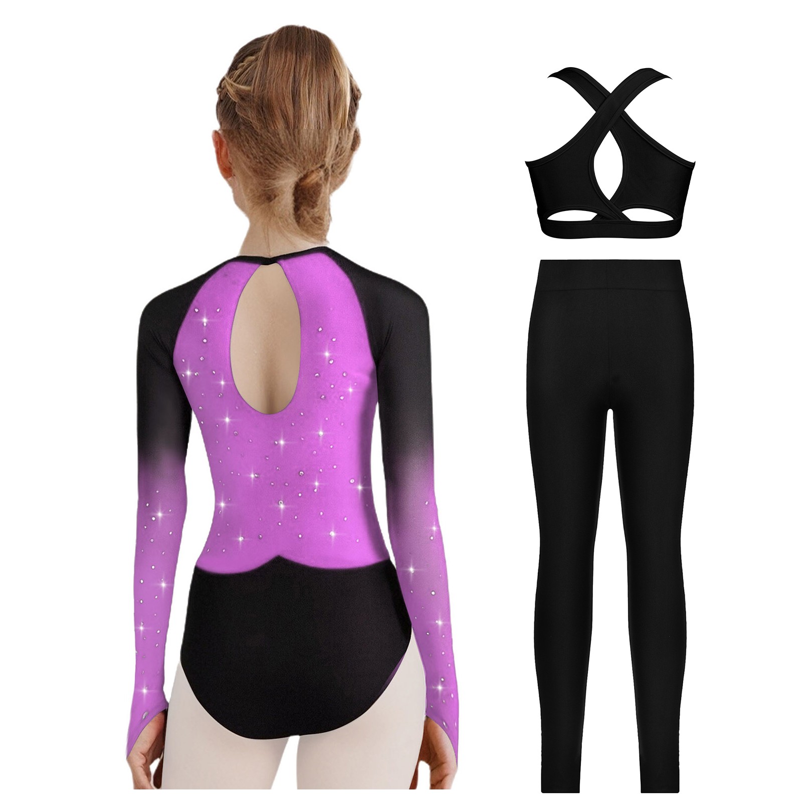 Girls 3-Piece Dancewear Ballet Cha-Cha Leotard Training Bodysuit Festival Yoga