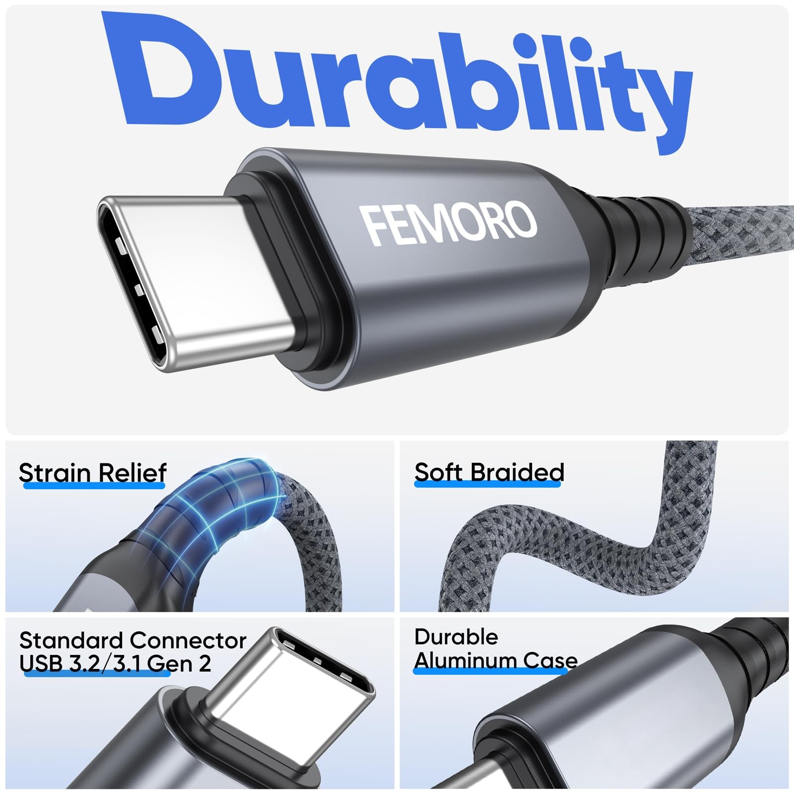 USB C Cable 15ft, Long 3.2 Gen2 10Gbps Data Transfer 15 Feet, Grey