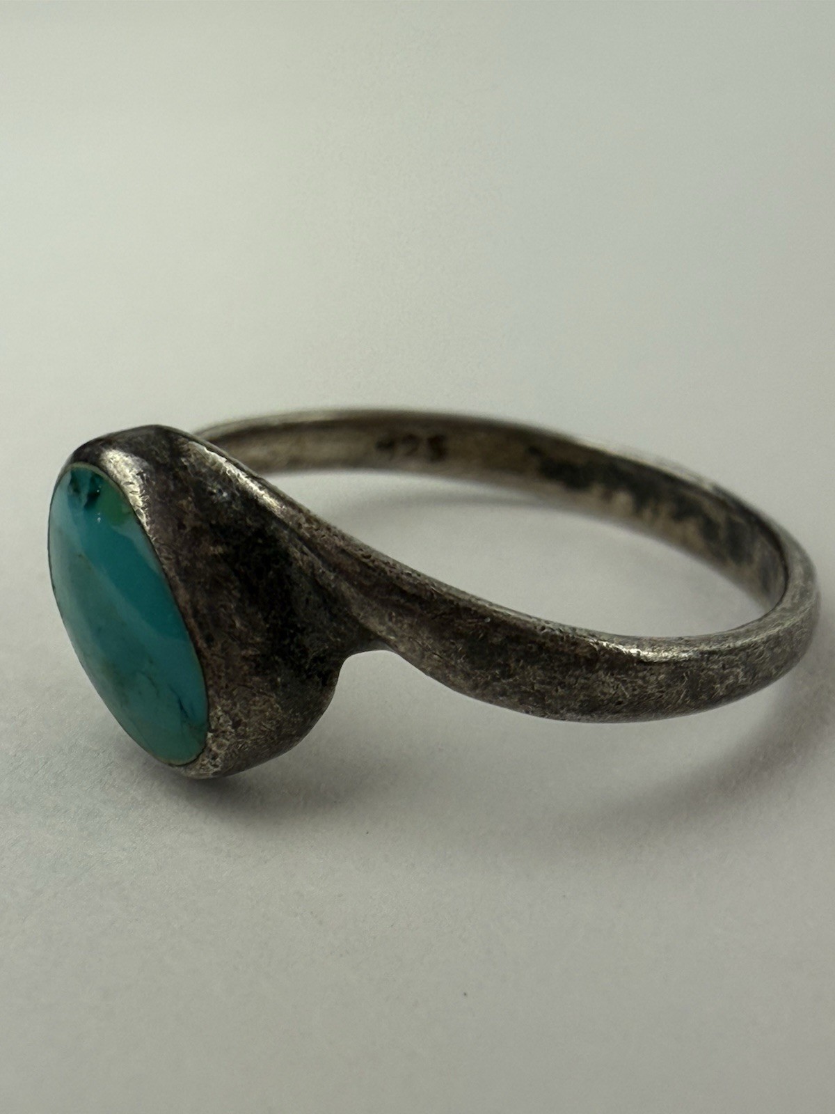 как выглядит Vintage925 Sterling Silver Ring Turquoise 6.75 Southwestern Native Wavy фото