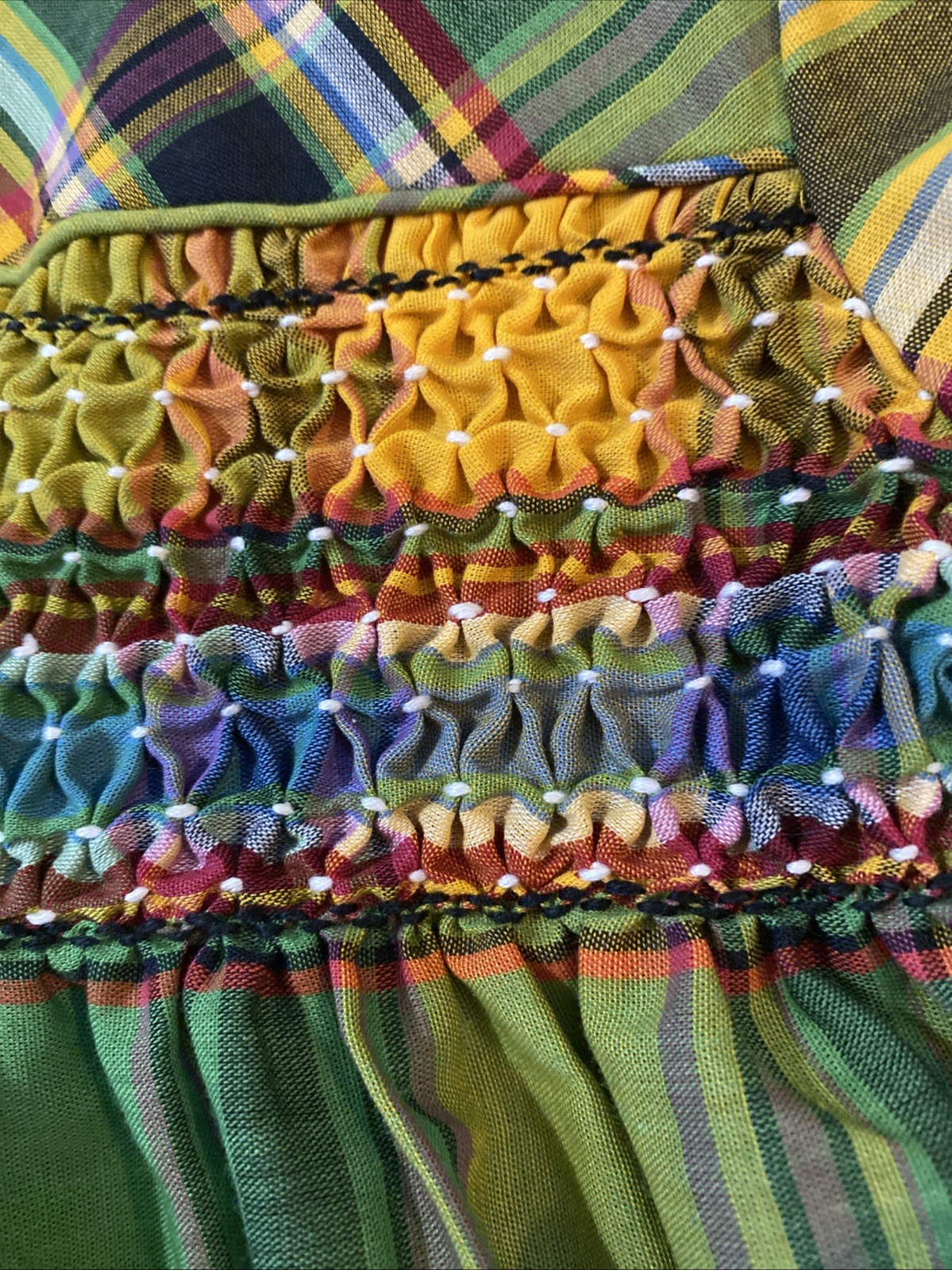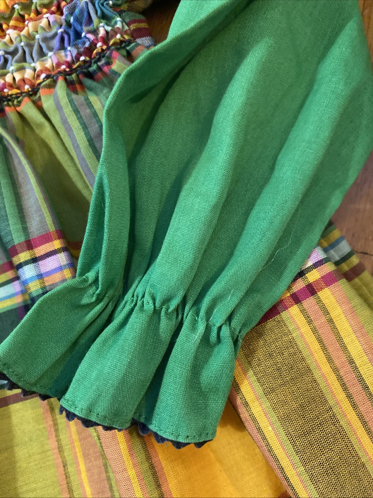 Vintage Polly Finders Smocked Cottage Plaid Dress Girls