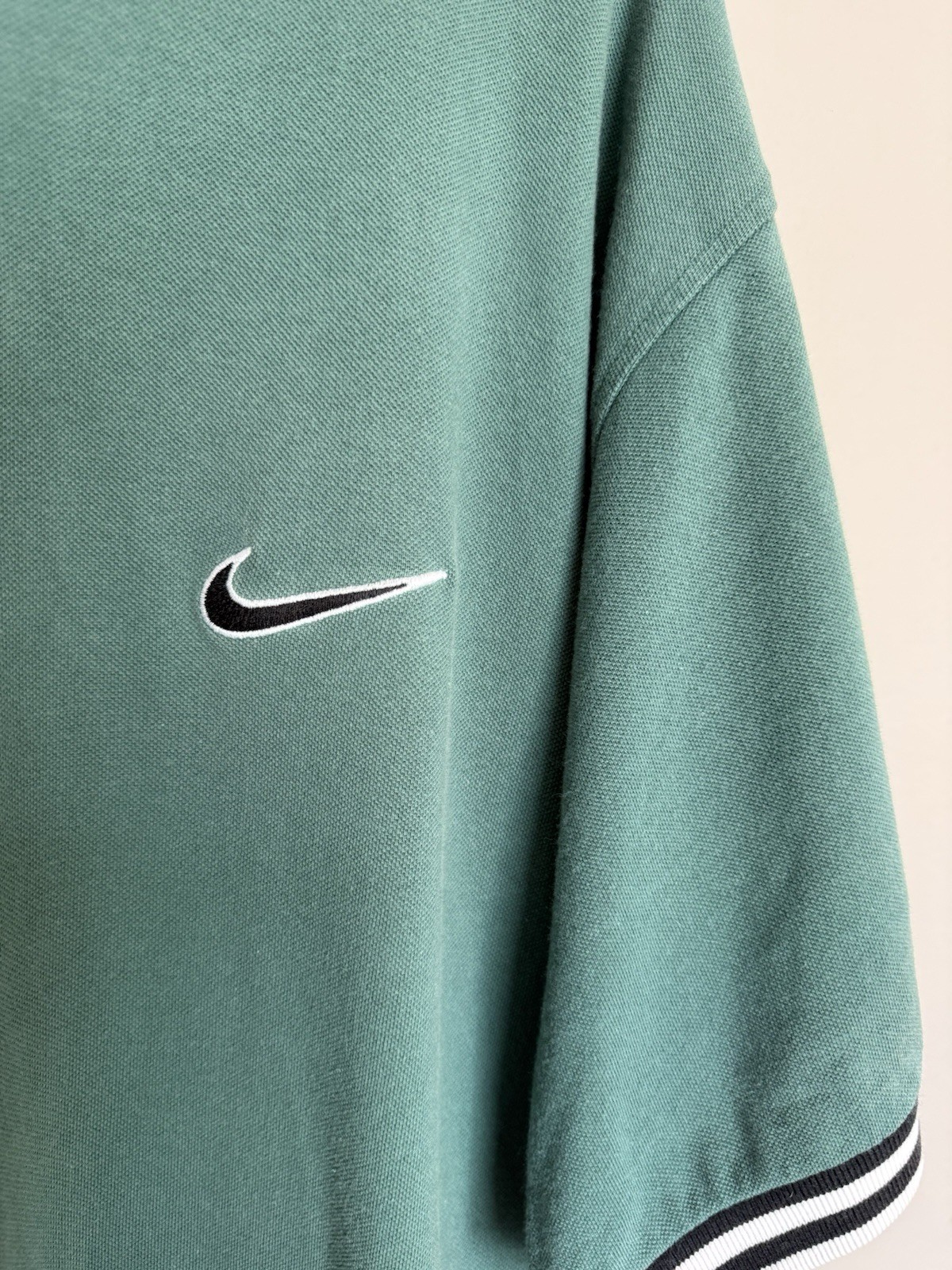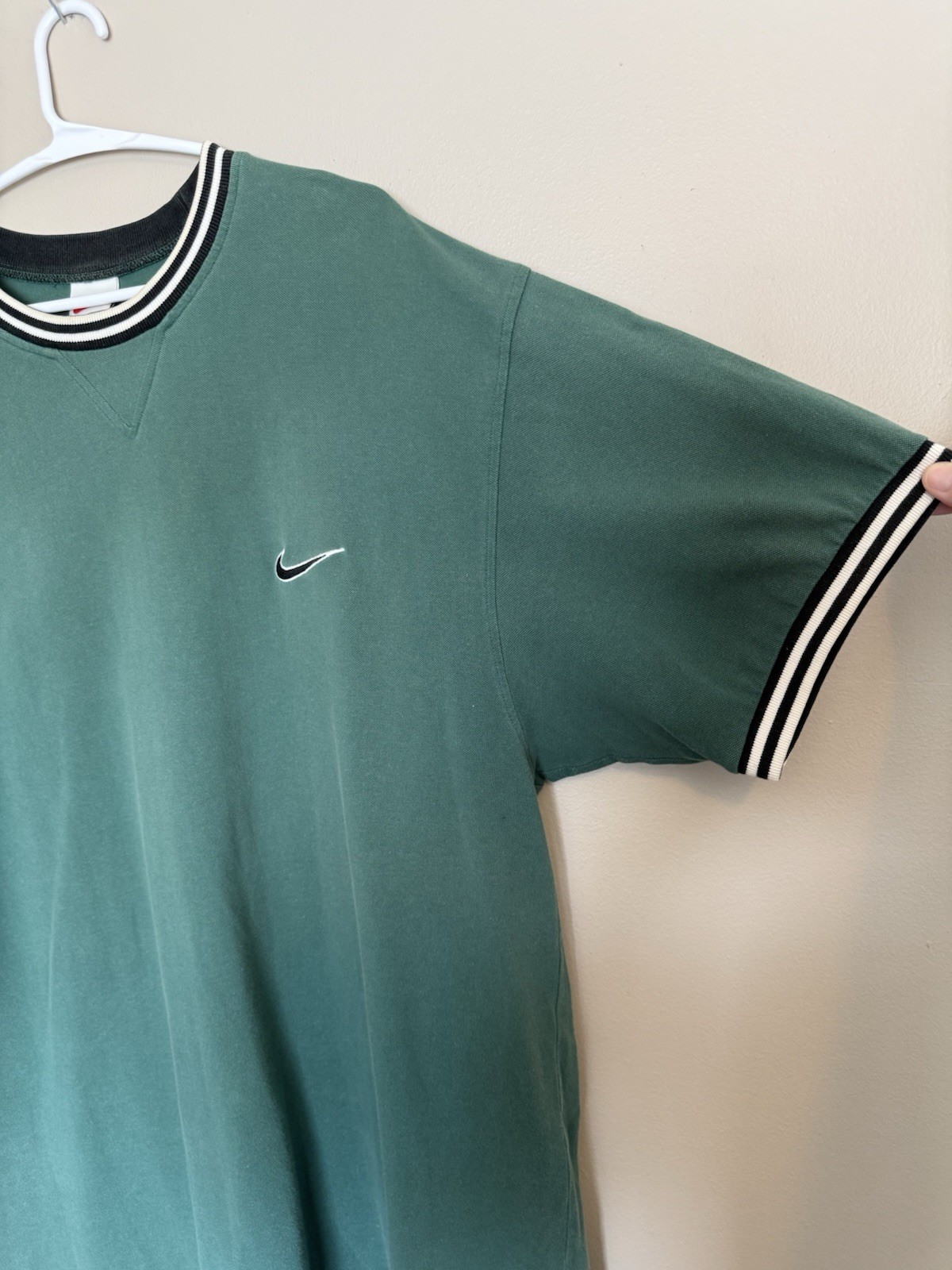 как выглядит VINTAGE 90S Green NIKE STRIPED RIBBING RINGER TEE Size XL Made In Peru фото