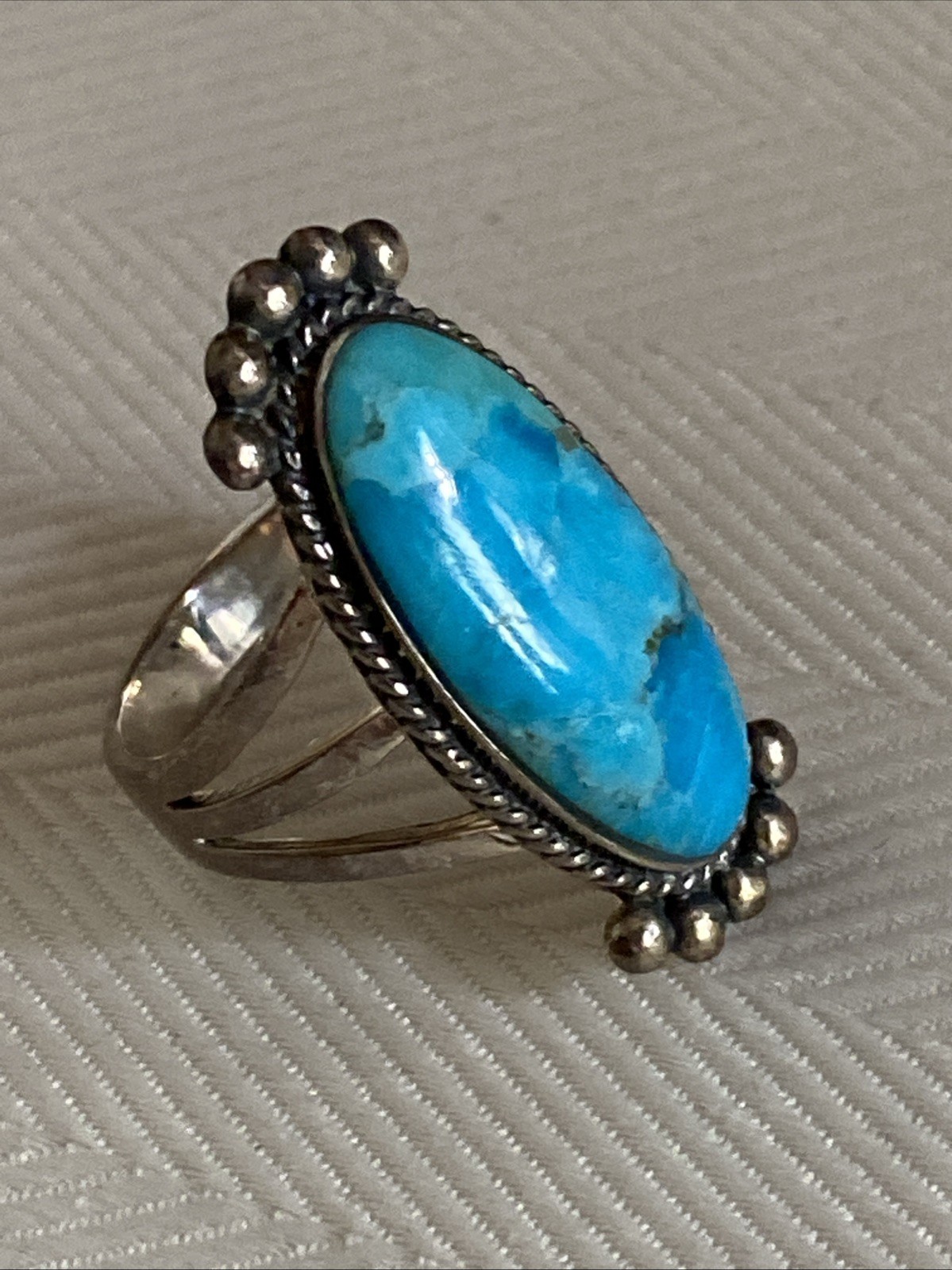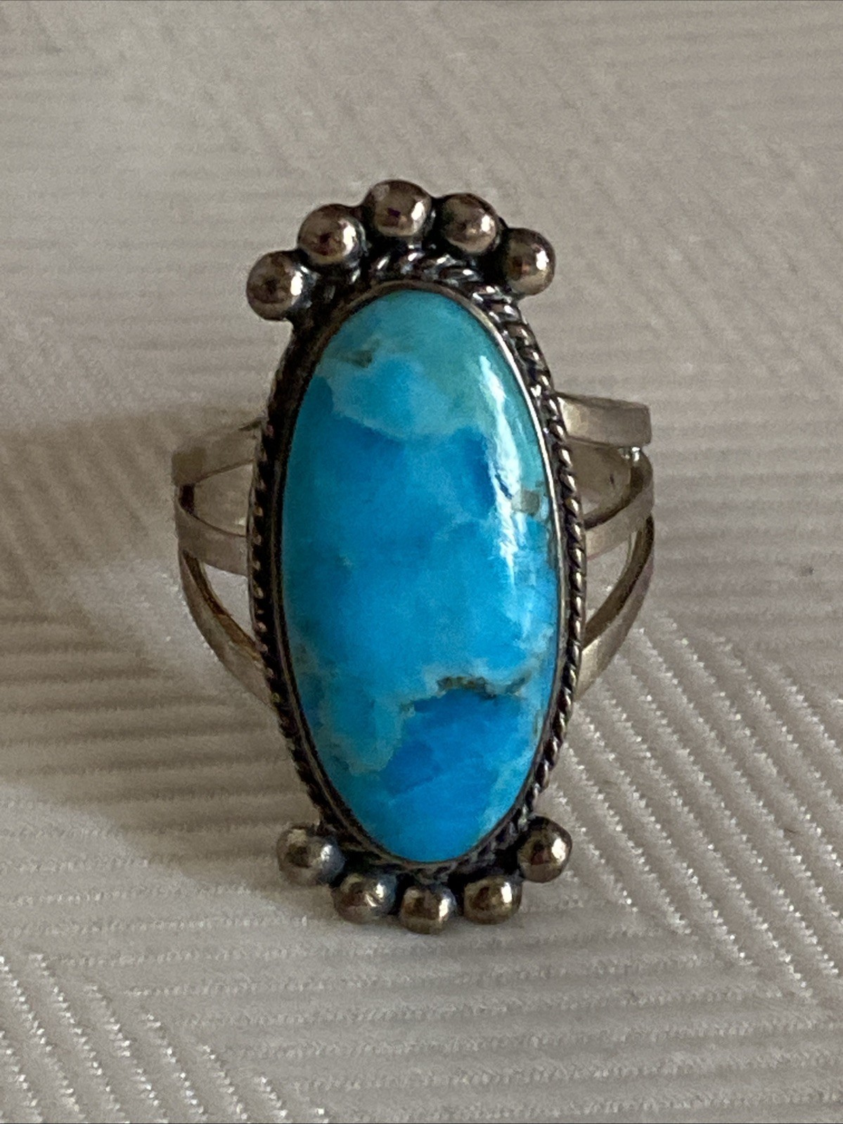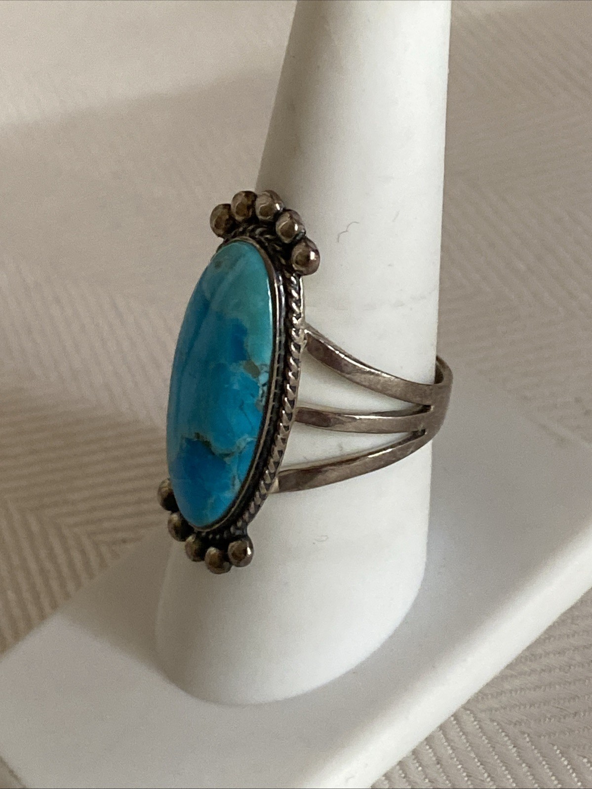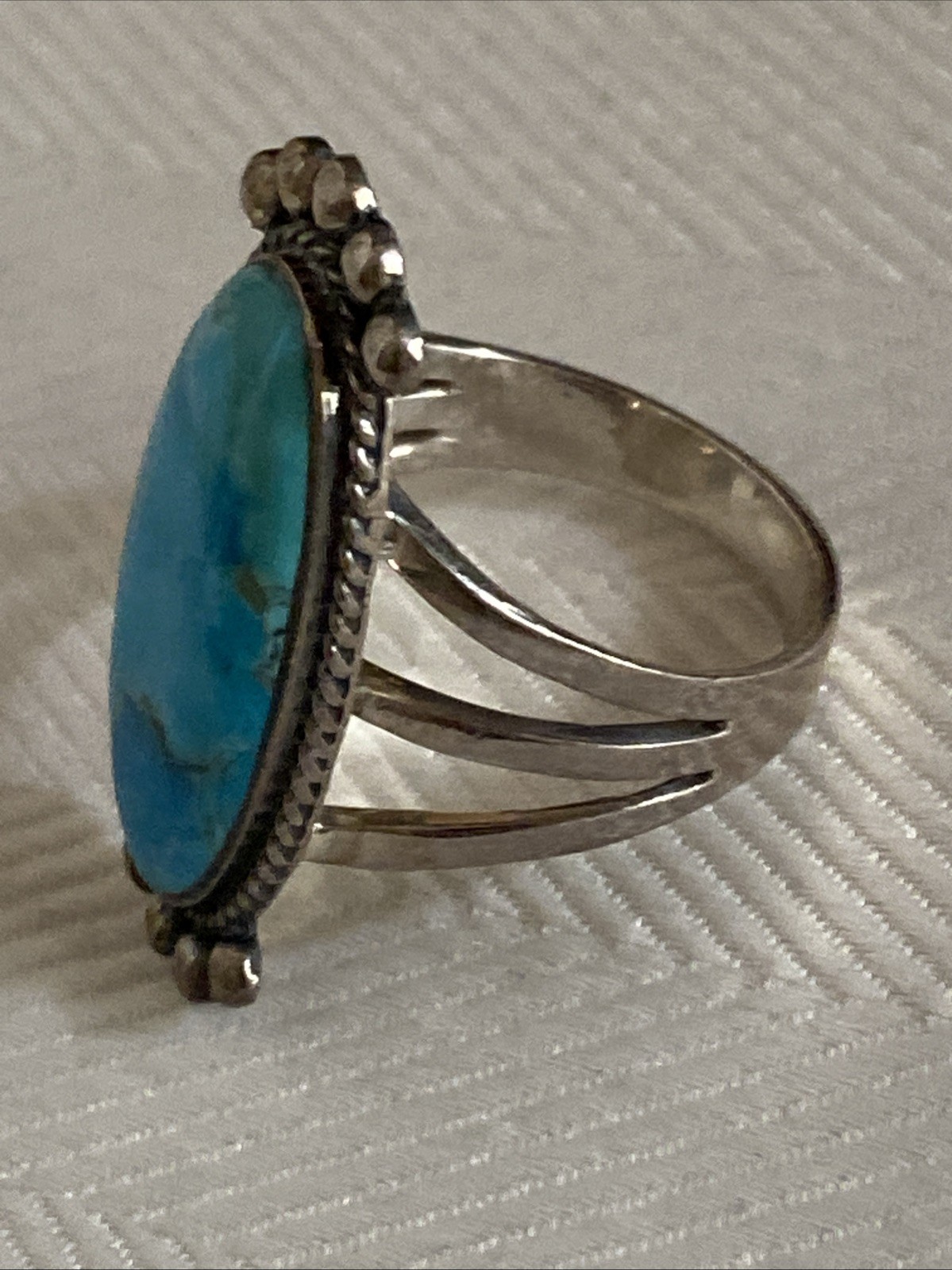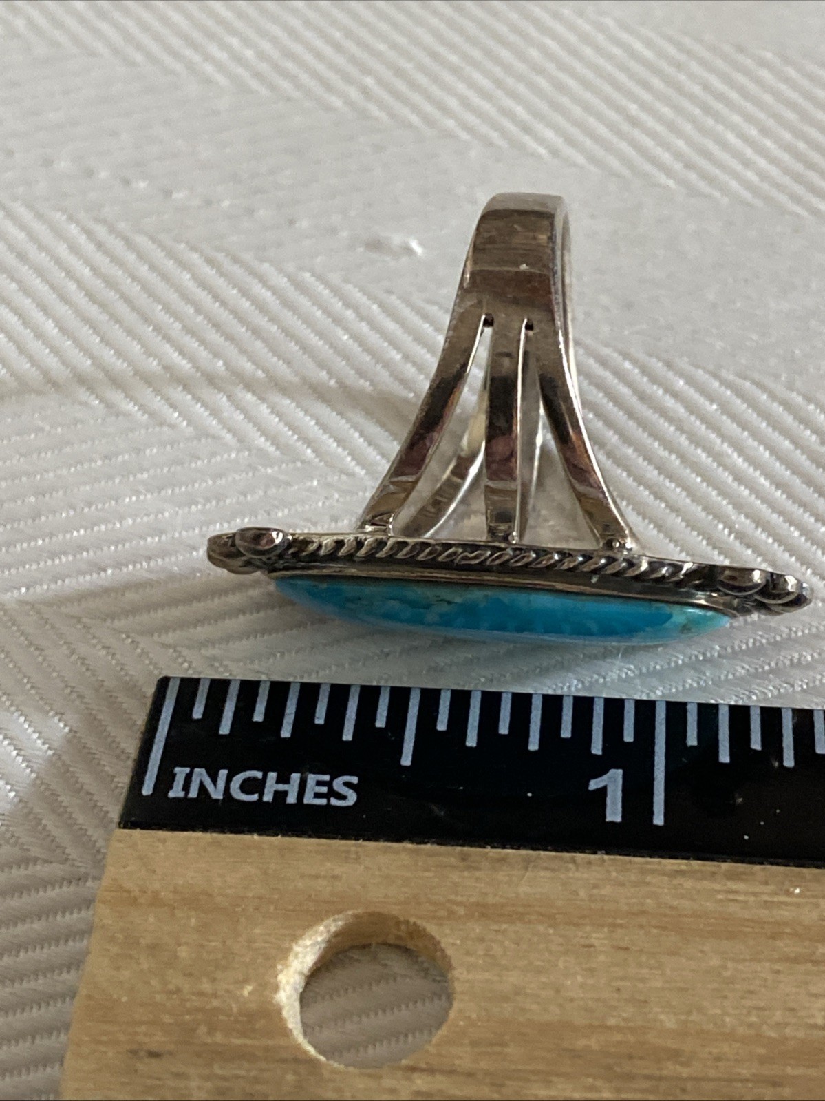 Southwestern Style Beautiful Sterling Silver Turquoise Ring Size 8