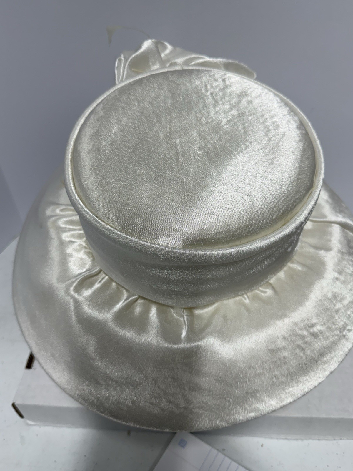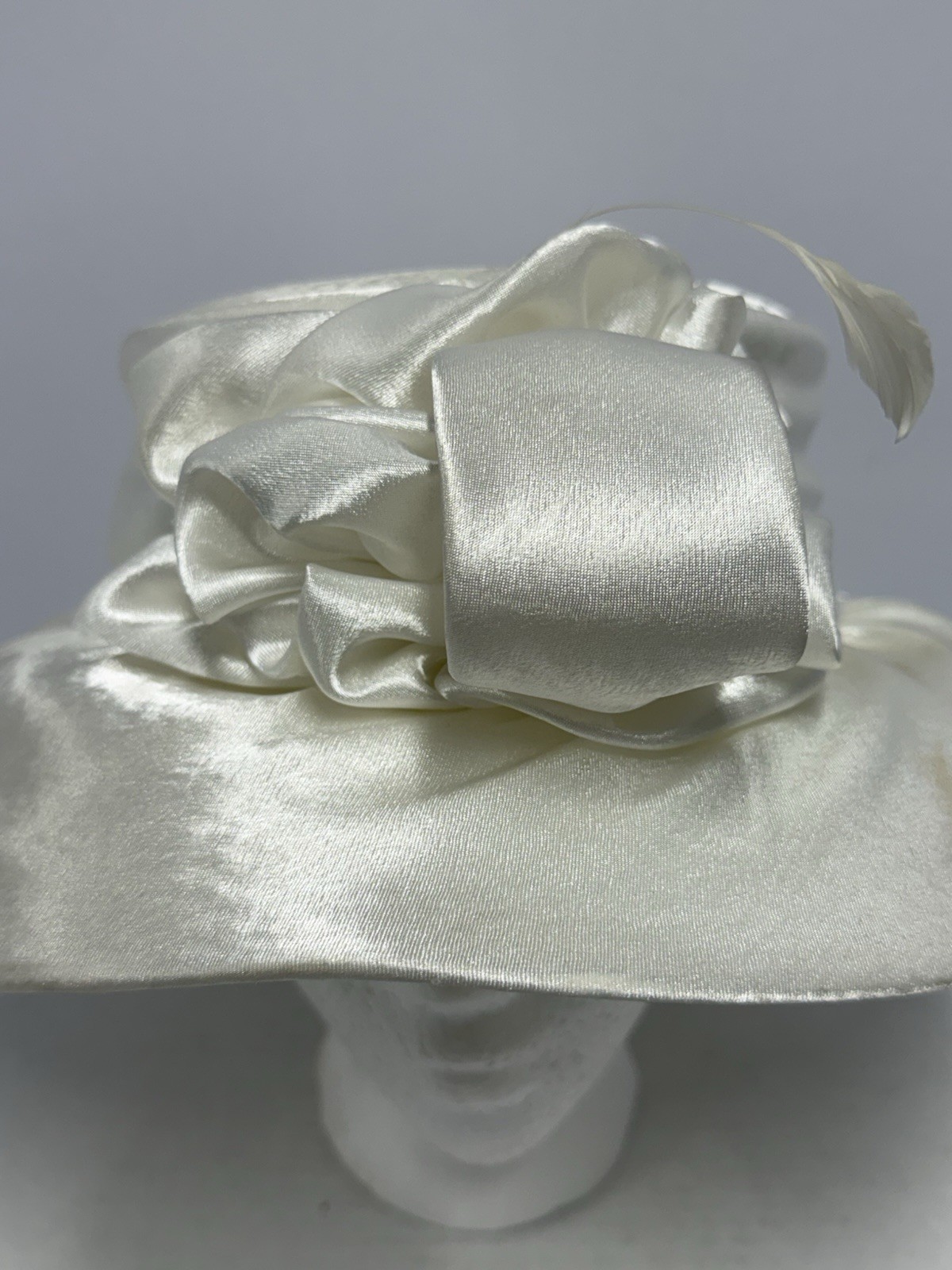 Elegant Ivory Satin Wide Brim Church Hat Classic Formal Statement Derby Easter
