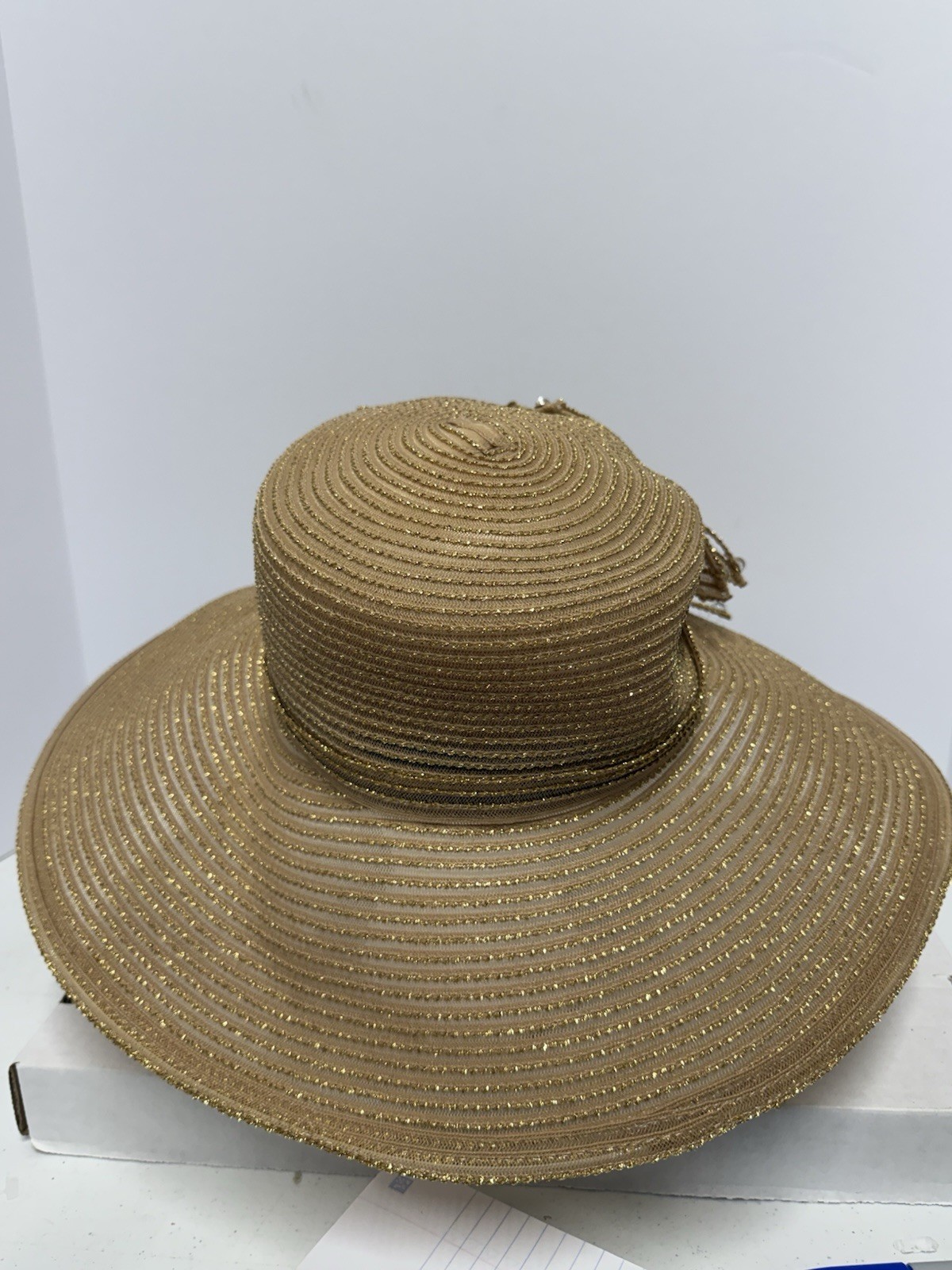 August Accessories Fine Millinery Gold Wide Brim Church Derby Hat