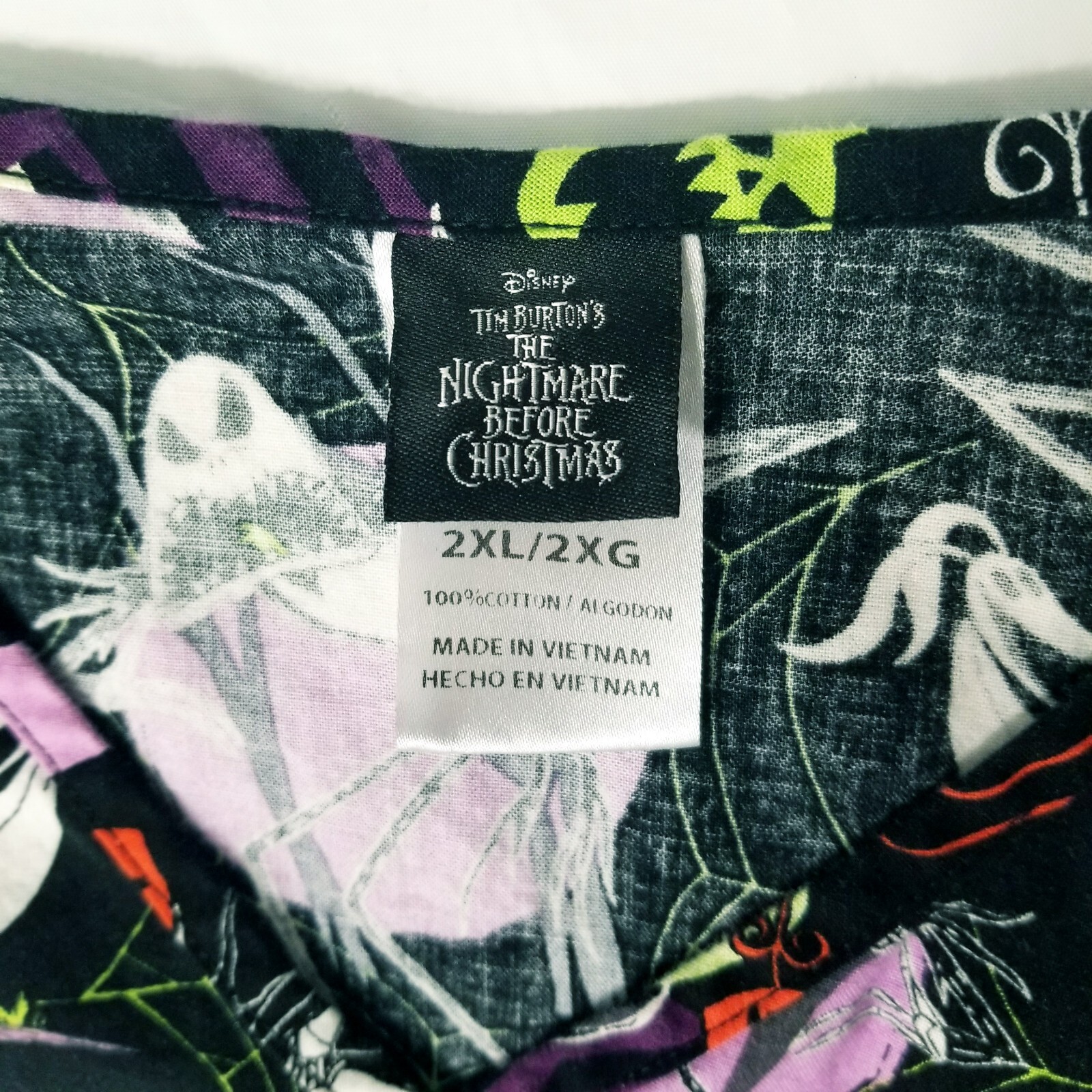 как выглядит Nightmare Before Christmas Womens 2XL Black V-Neck Scrub Top Jack Skellington фото
