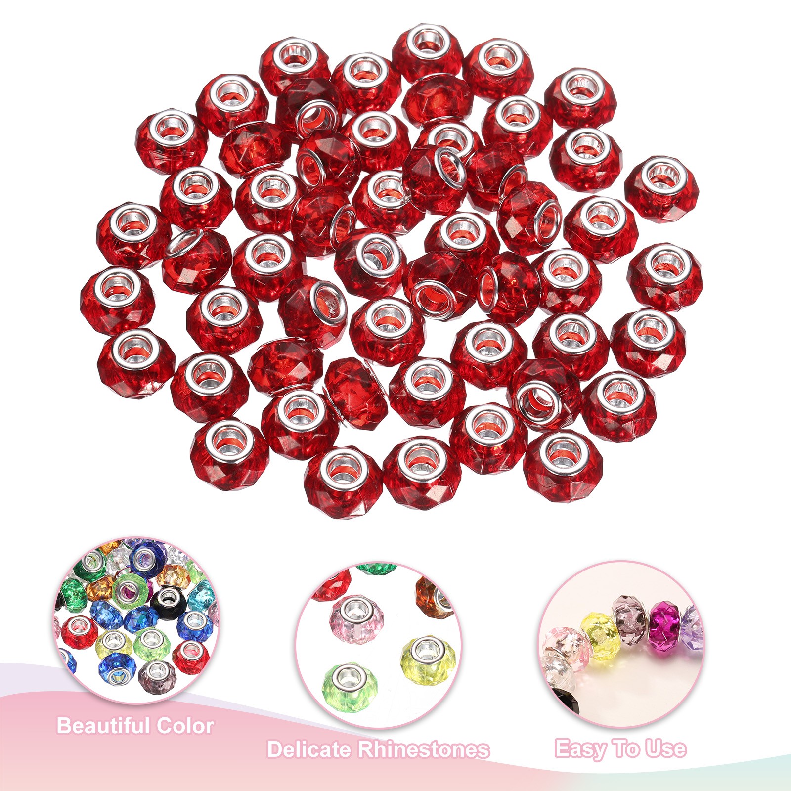 50Pcs 14mm Large Hole Acrylic Beads Red European Loose Faceted Bead