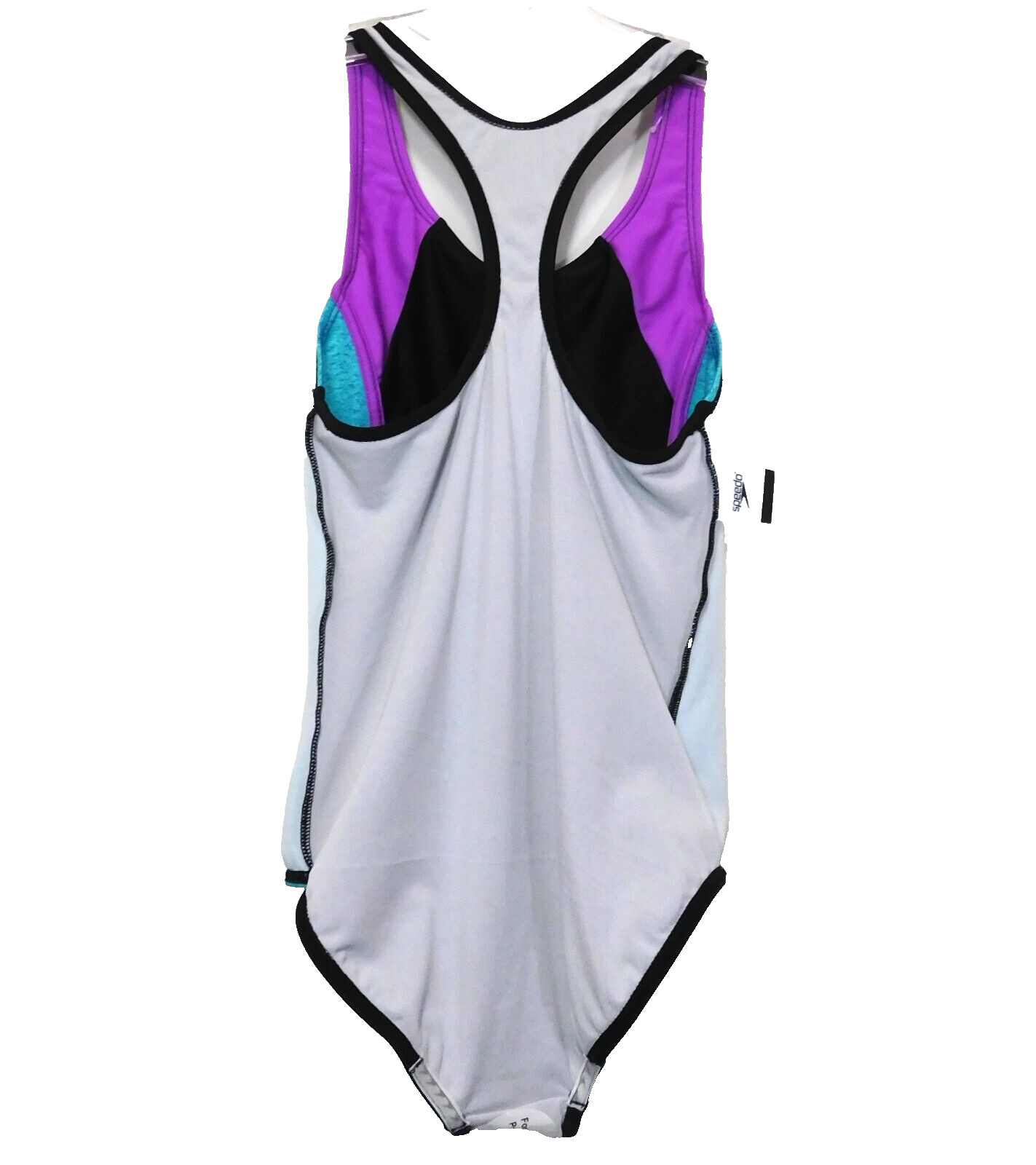 SPEEDO One-Piece SwimSuit Girls XL Black Teal Racerback NEW Bathing Suit
