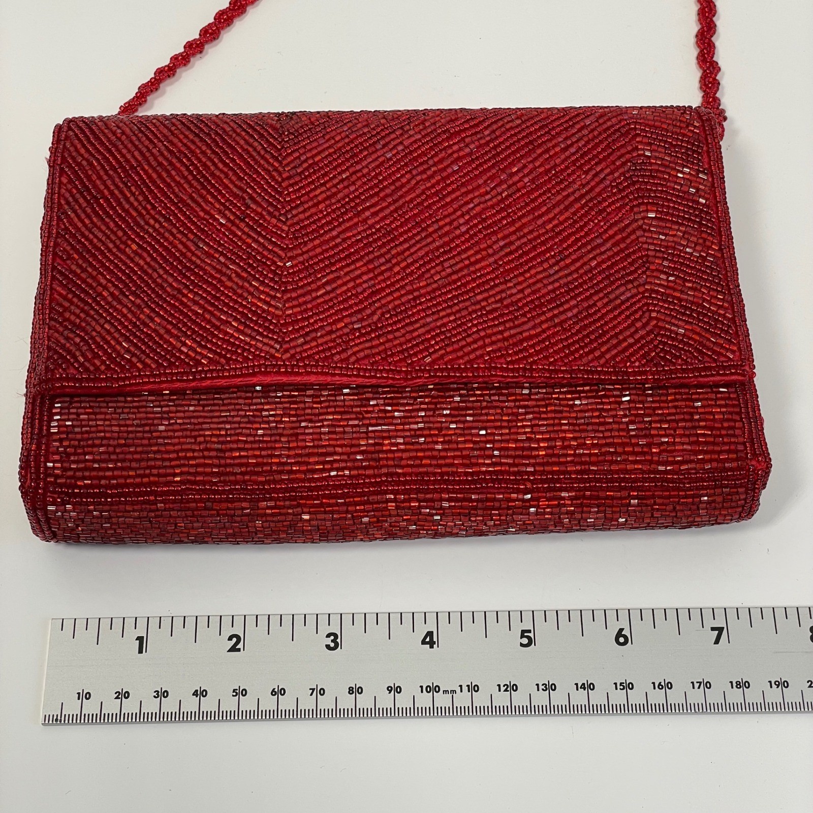 как выглядит Vintage La Regale Red Beaded Chevron Clutch Evening Bag Crossbody Handmade фото
