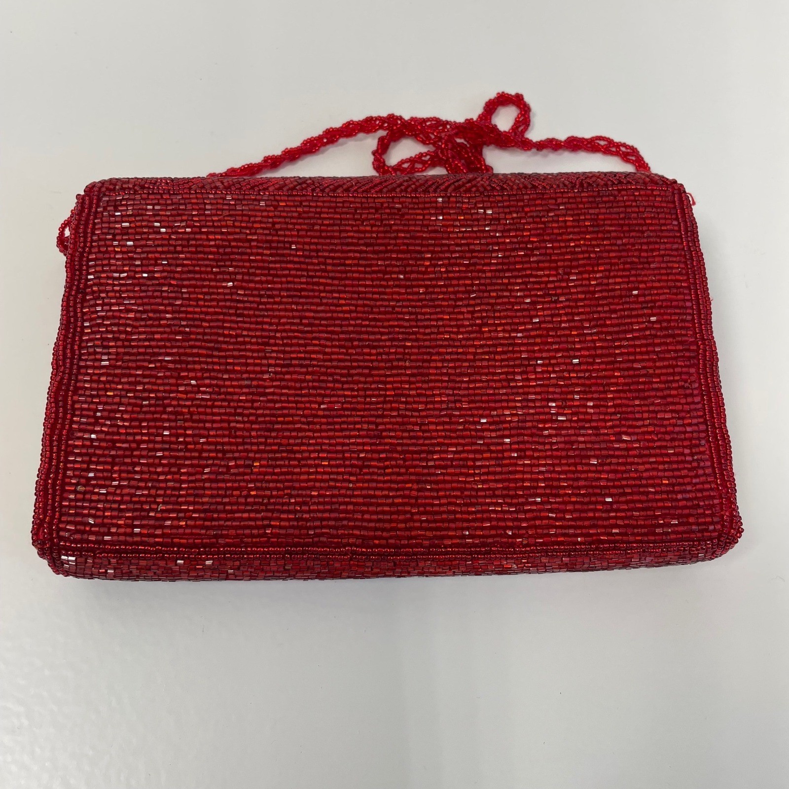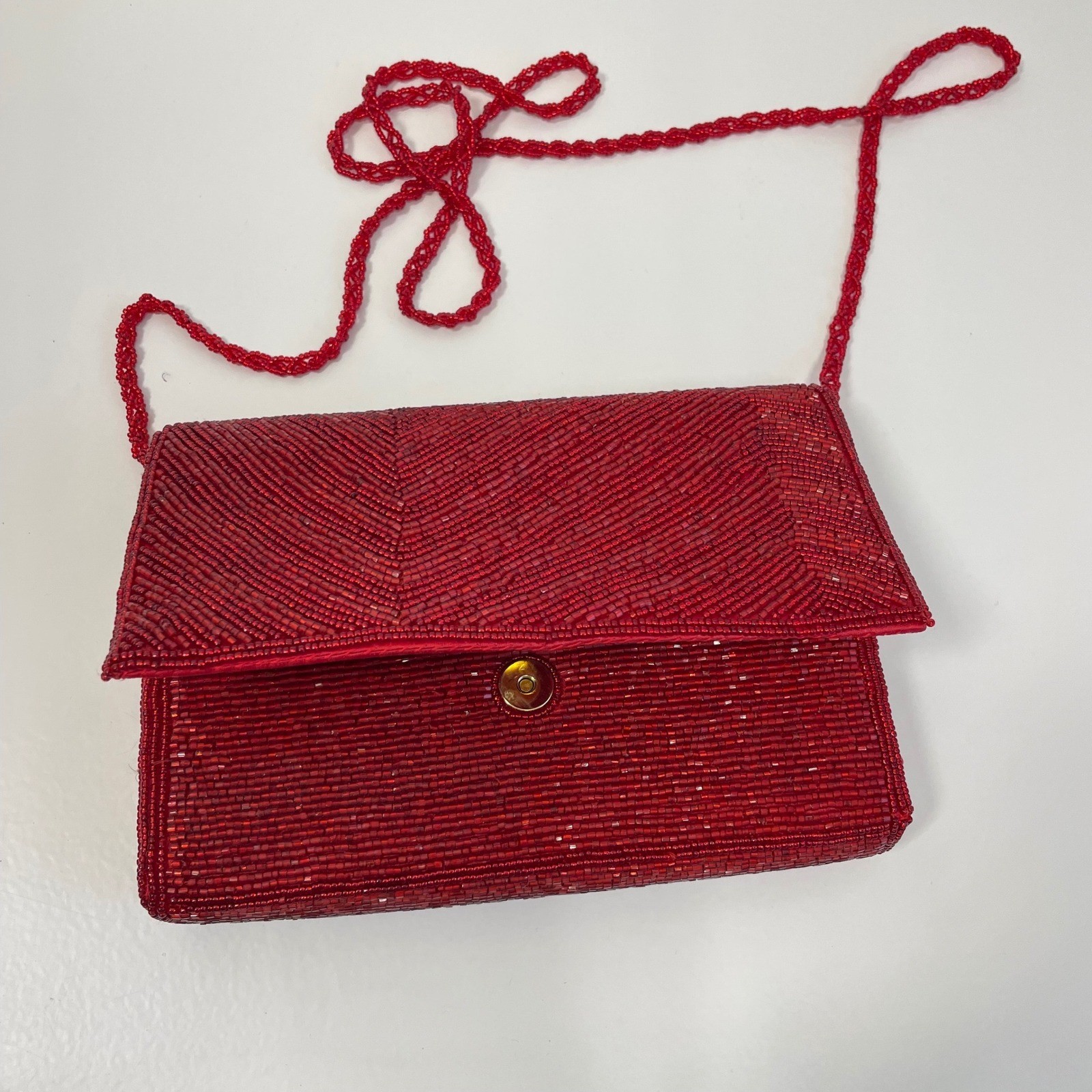 Vintage La Regale Red Beaded Chevron Clutch Evening Bag Crossbody Handmade
