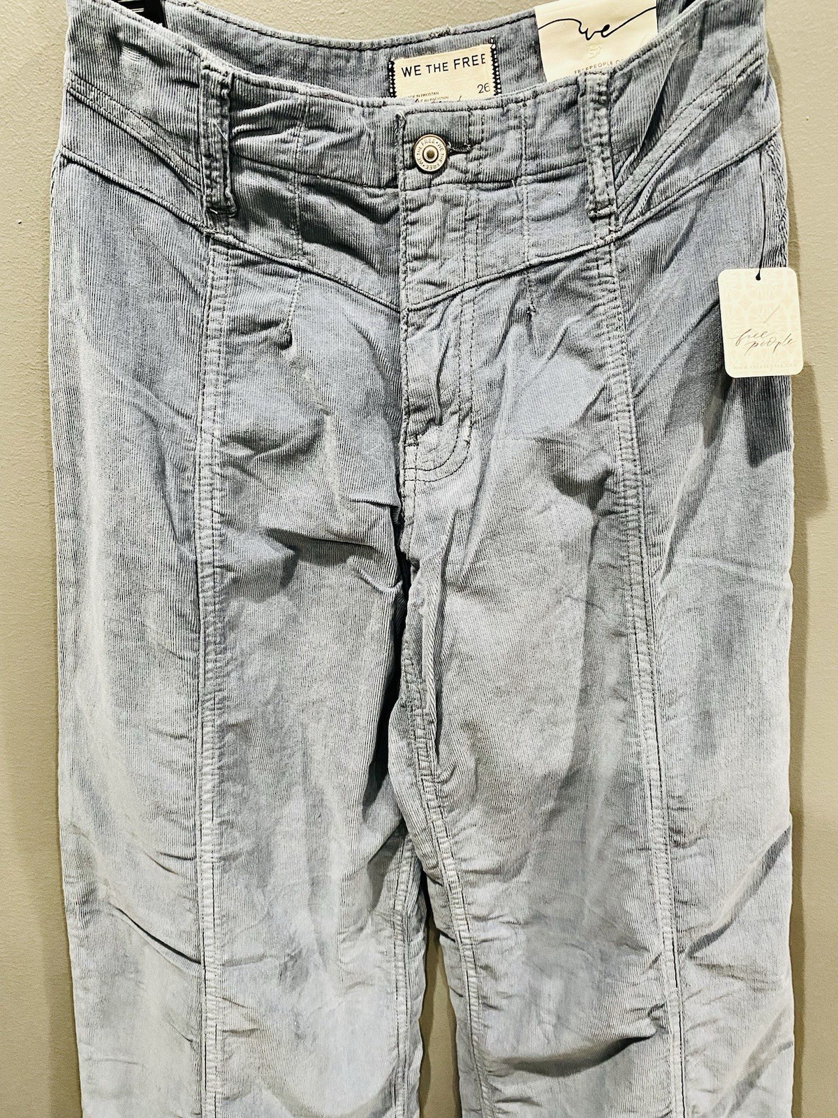 как выглядит Free People Wide Leg Corduroy Light Grey Pants Size 26 New With Tags фото