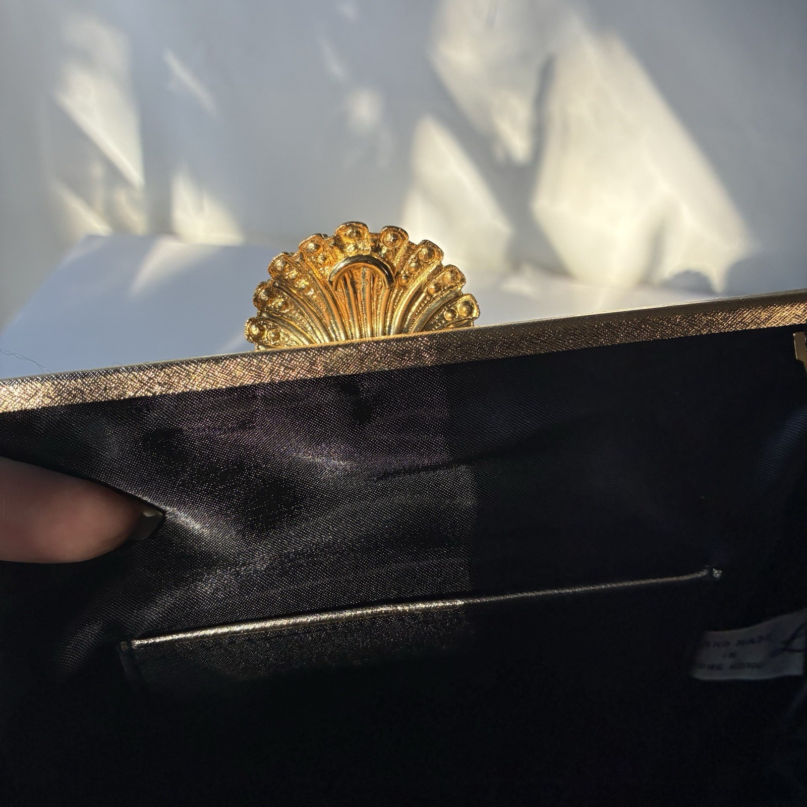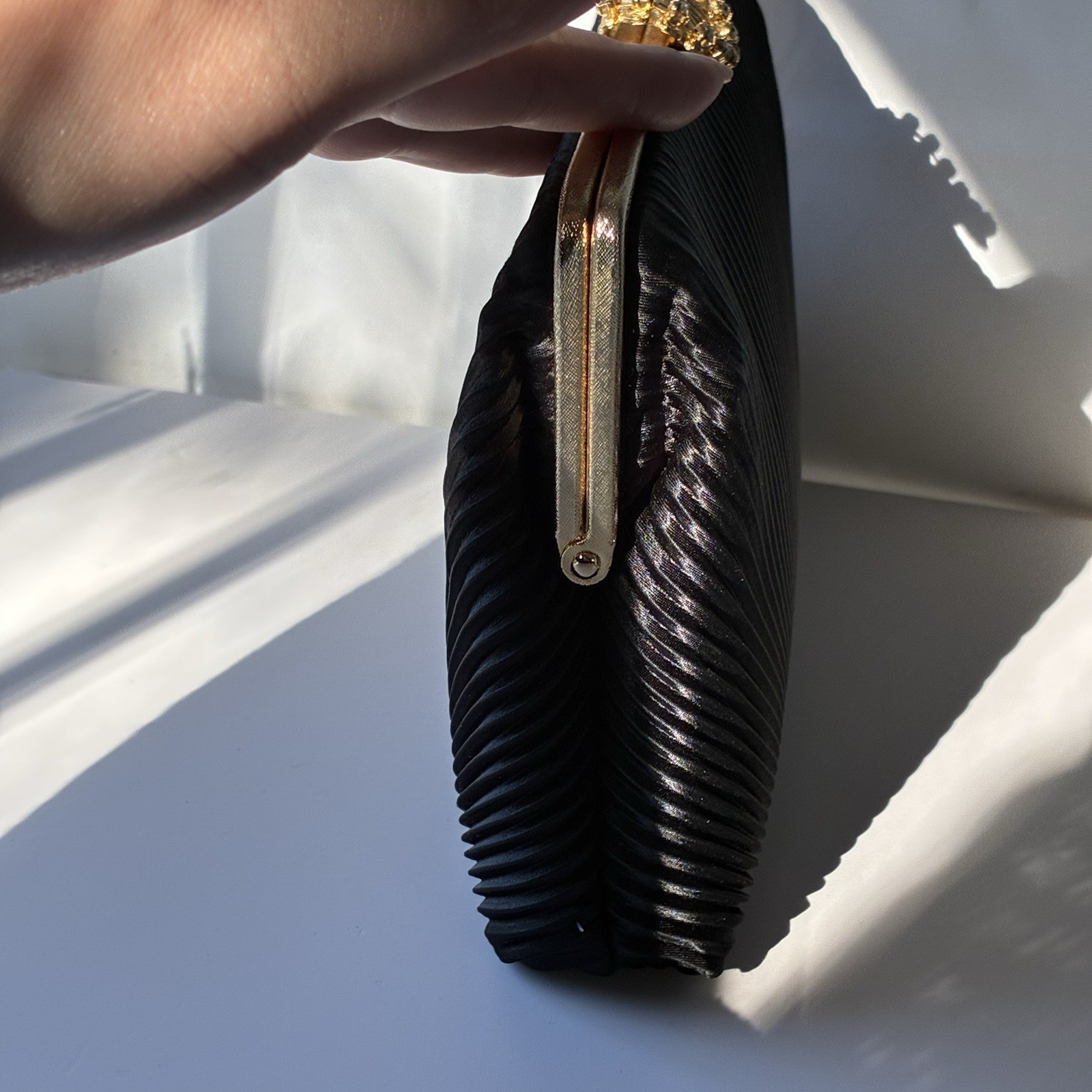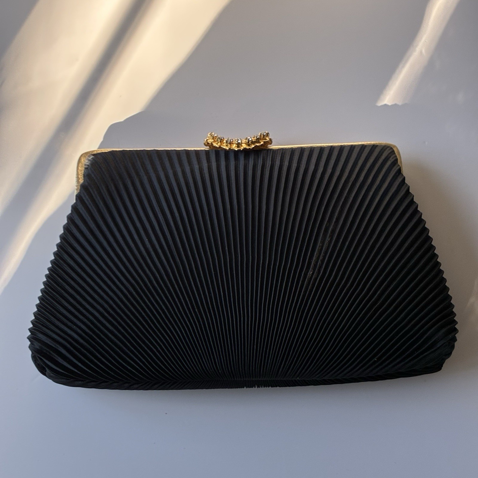 как выглядит Vintage MCM Black Pleated Clutch Formal Evening Retro Gold Rhinestones LA REGALE фото