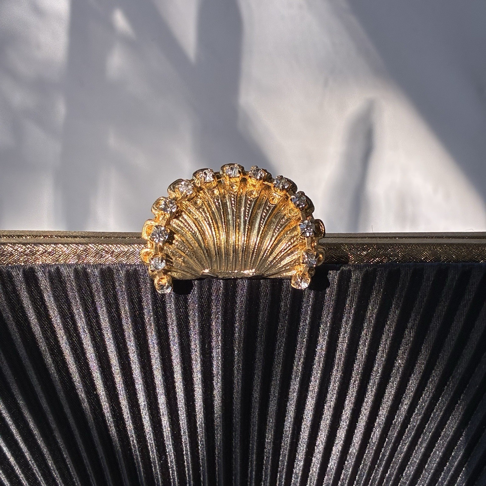 Vintage MCM Black Pleated Clutch Formal Evening Retro Gold Rhinestones LA REGALE