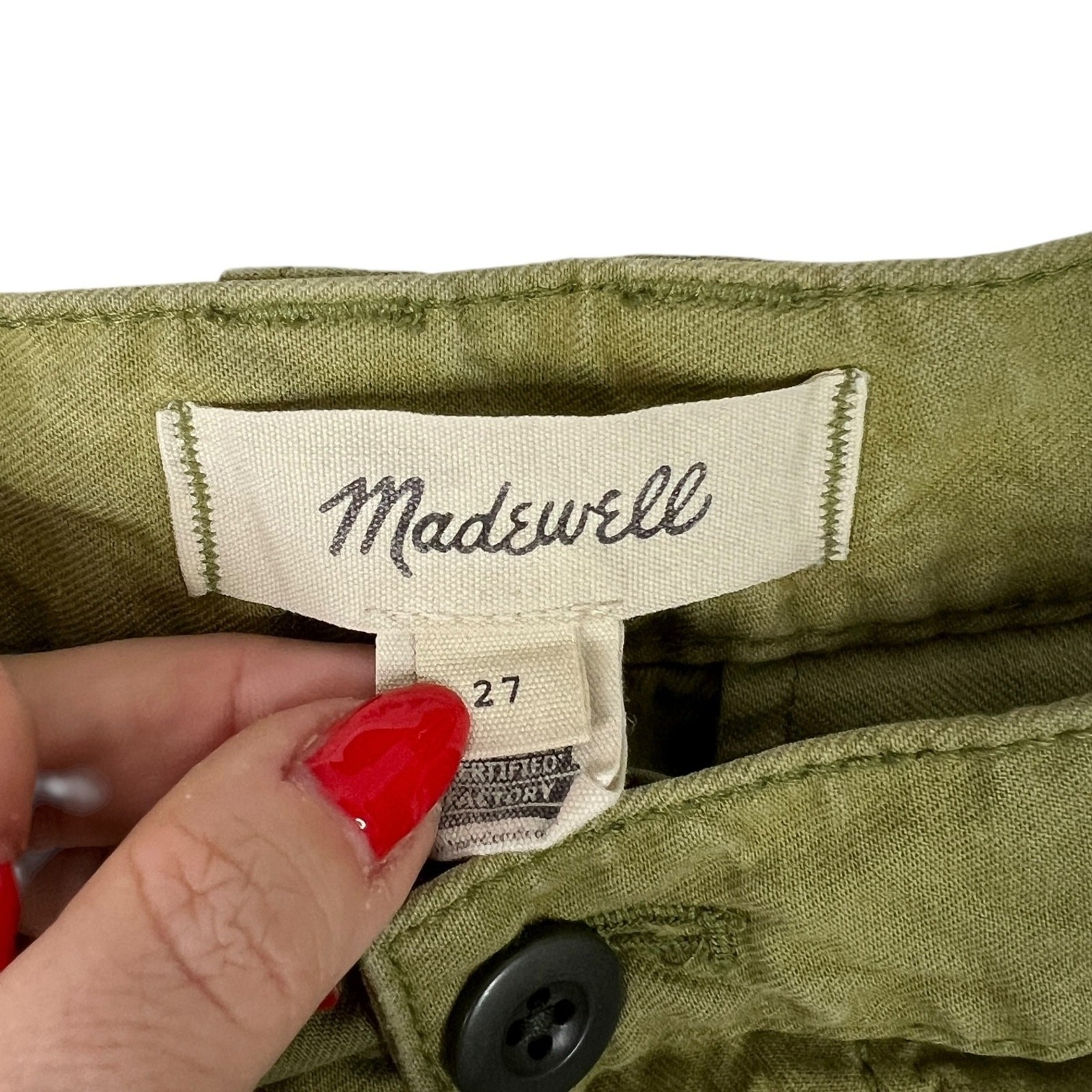 Madewell Garment Dyed Low Slung Straight Cargo Pants Cropped Frayed Raw Hem 27