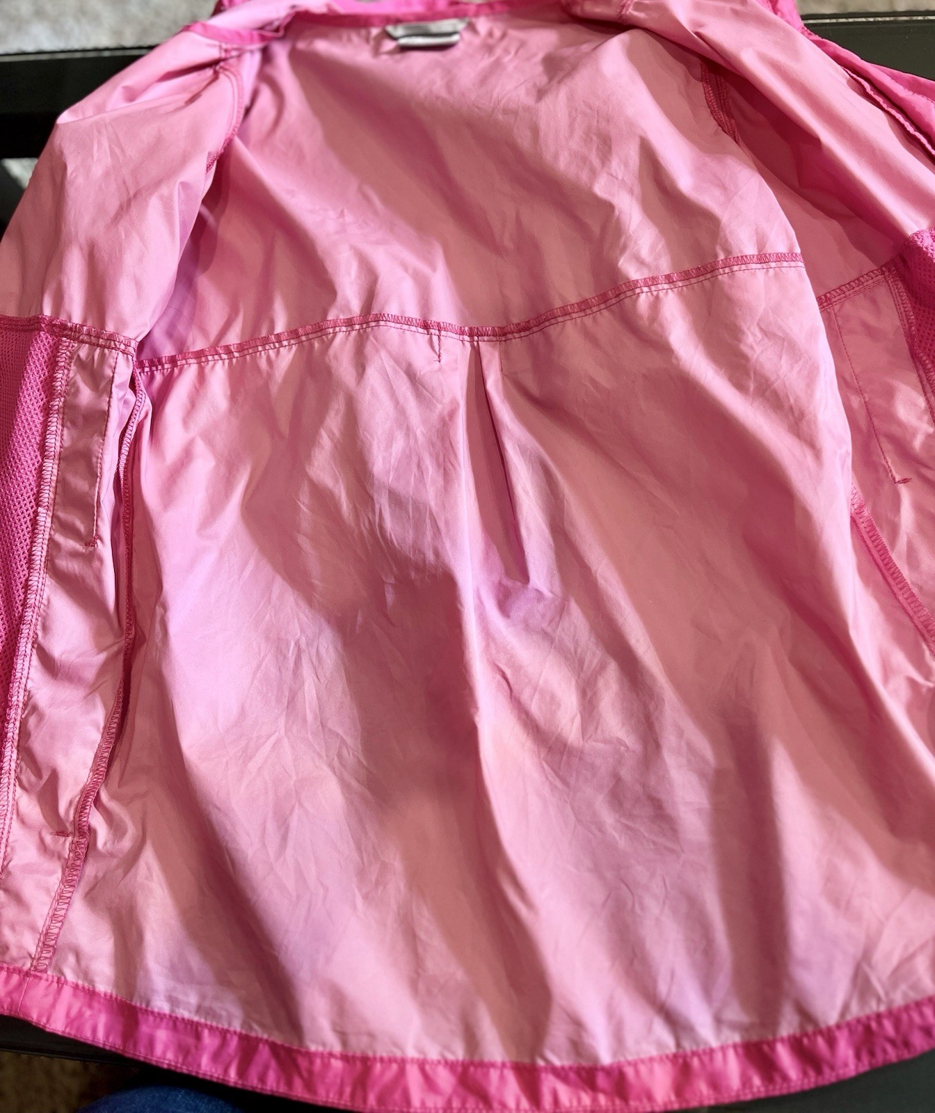 Girl s Pink Columbia Windbreaker Jacket W/Hood Lightweight Sz L 14/16