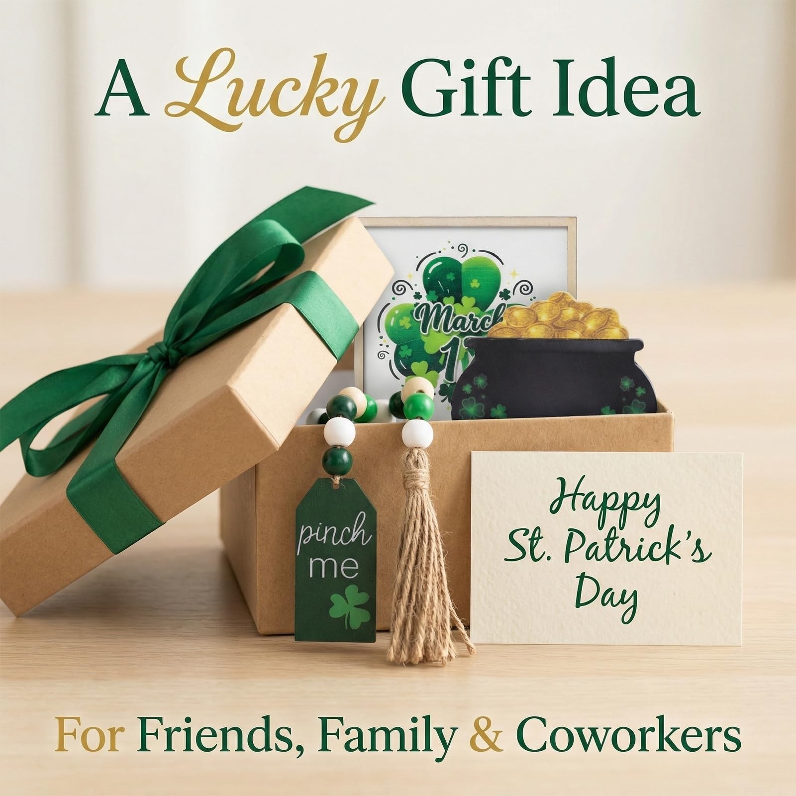 6PCS St. Patrick's Day Decorations Set - Lucky Shamrock, Pot of Gold, Bead Ga...