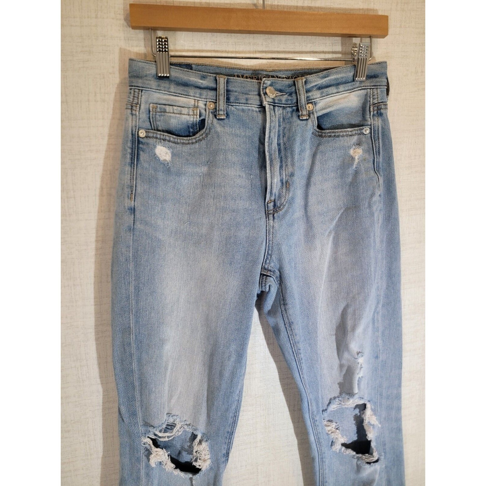 как выглядит READ American Eagle Jeans Womens 4 Blue Mom High Rise Denim Stretch Distressed фото