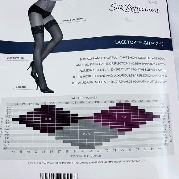 как выглядит Hanes NEW IN PACKAGE Jet Black Lace Top Thigh Highs Size EF фото