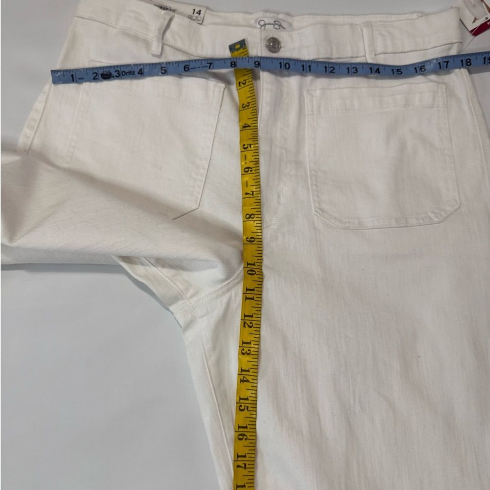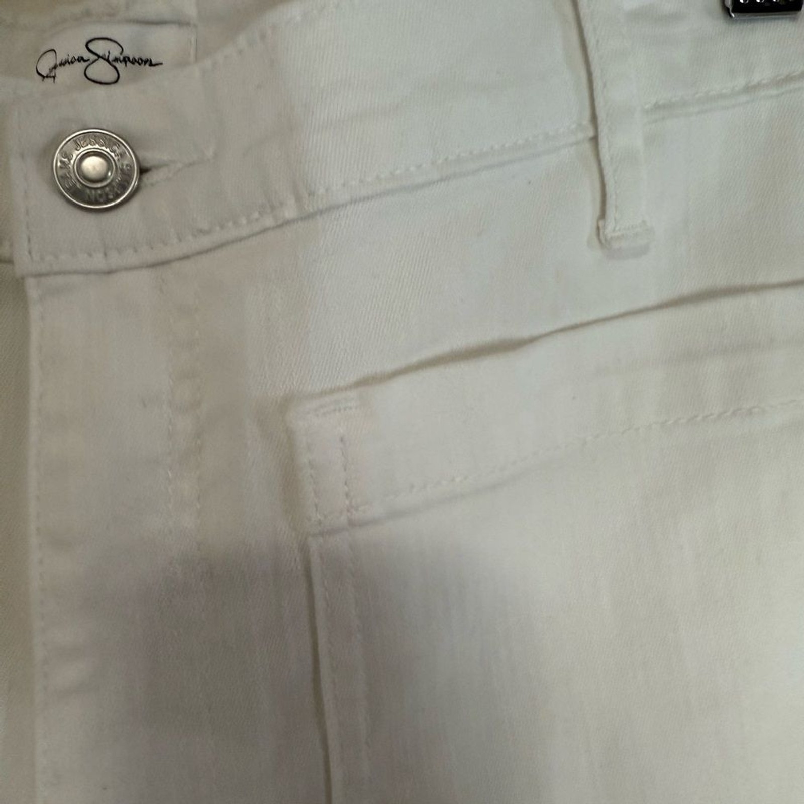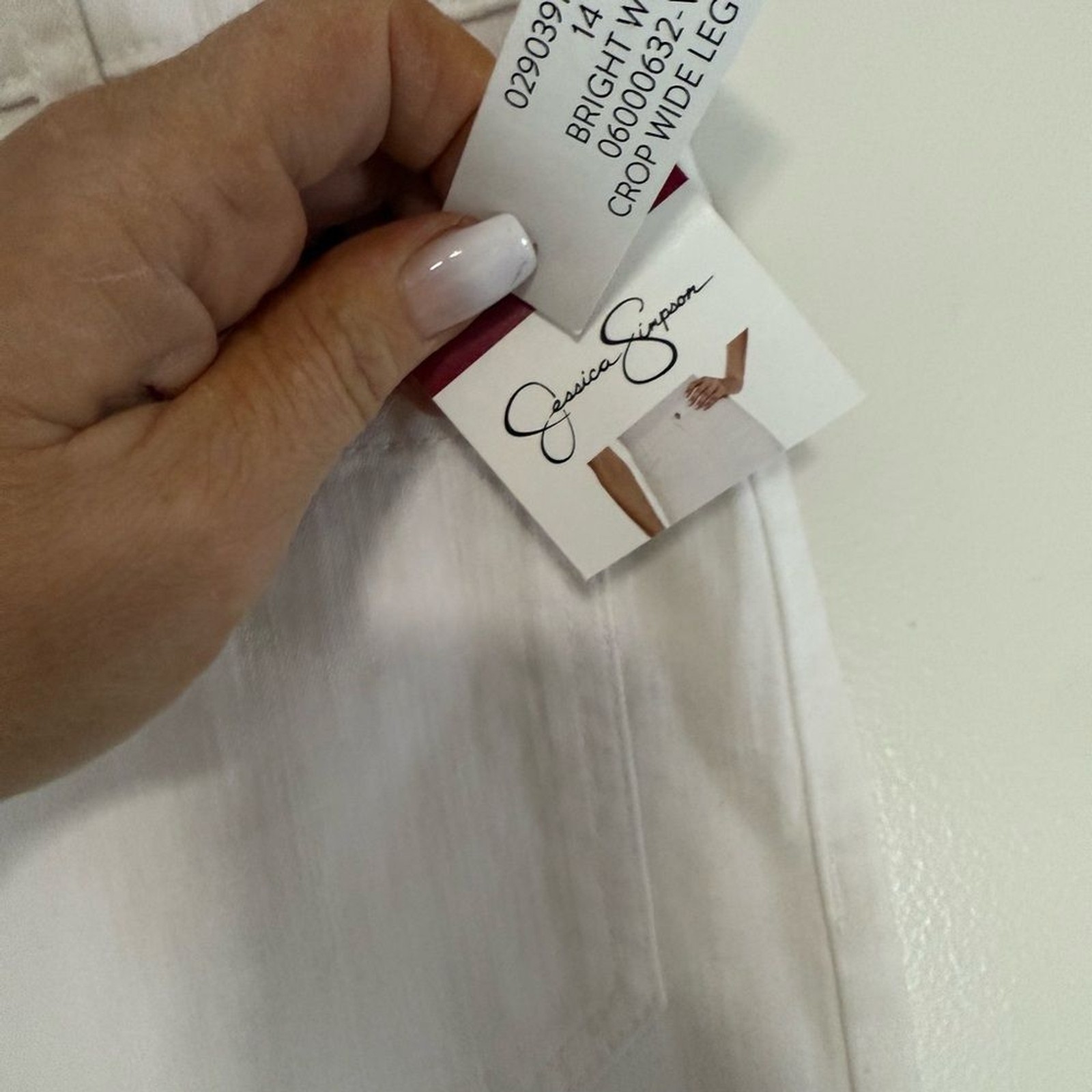 как выглядит Jessica Simpson NWT White Denim wide leg high rise crop Jean in size 14 фото