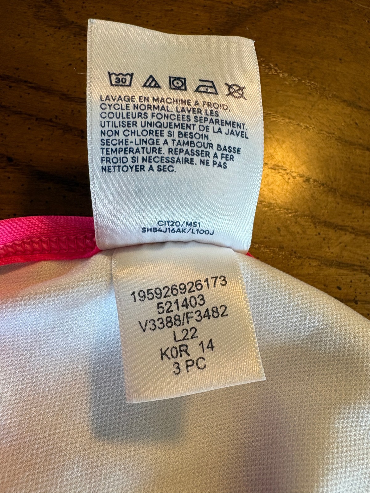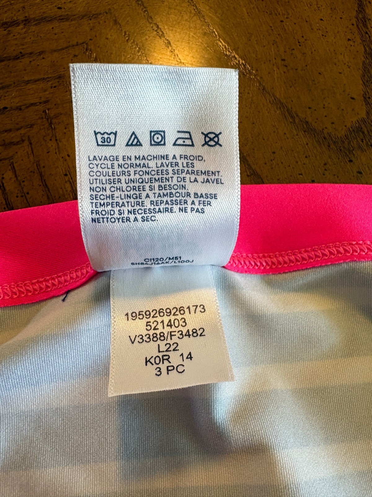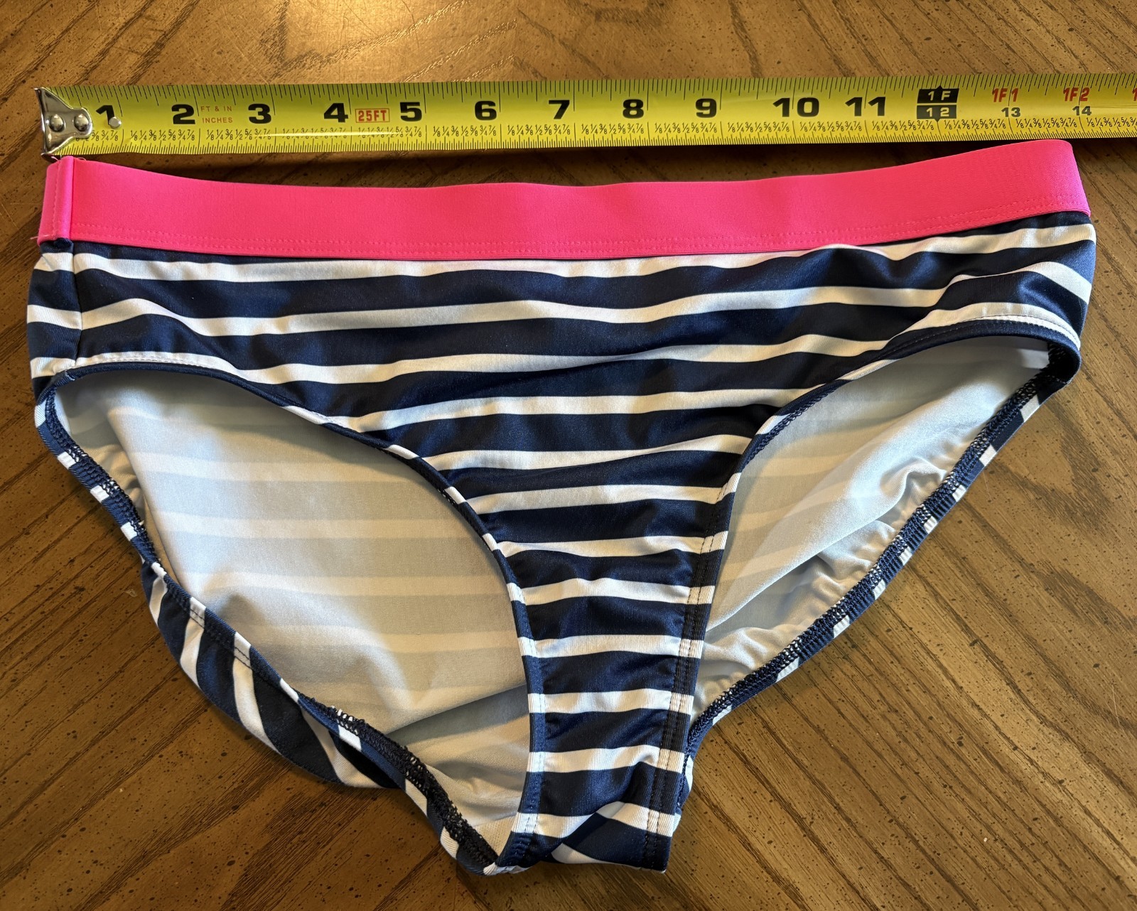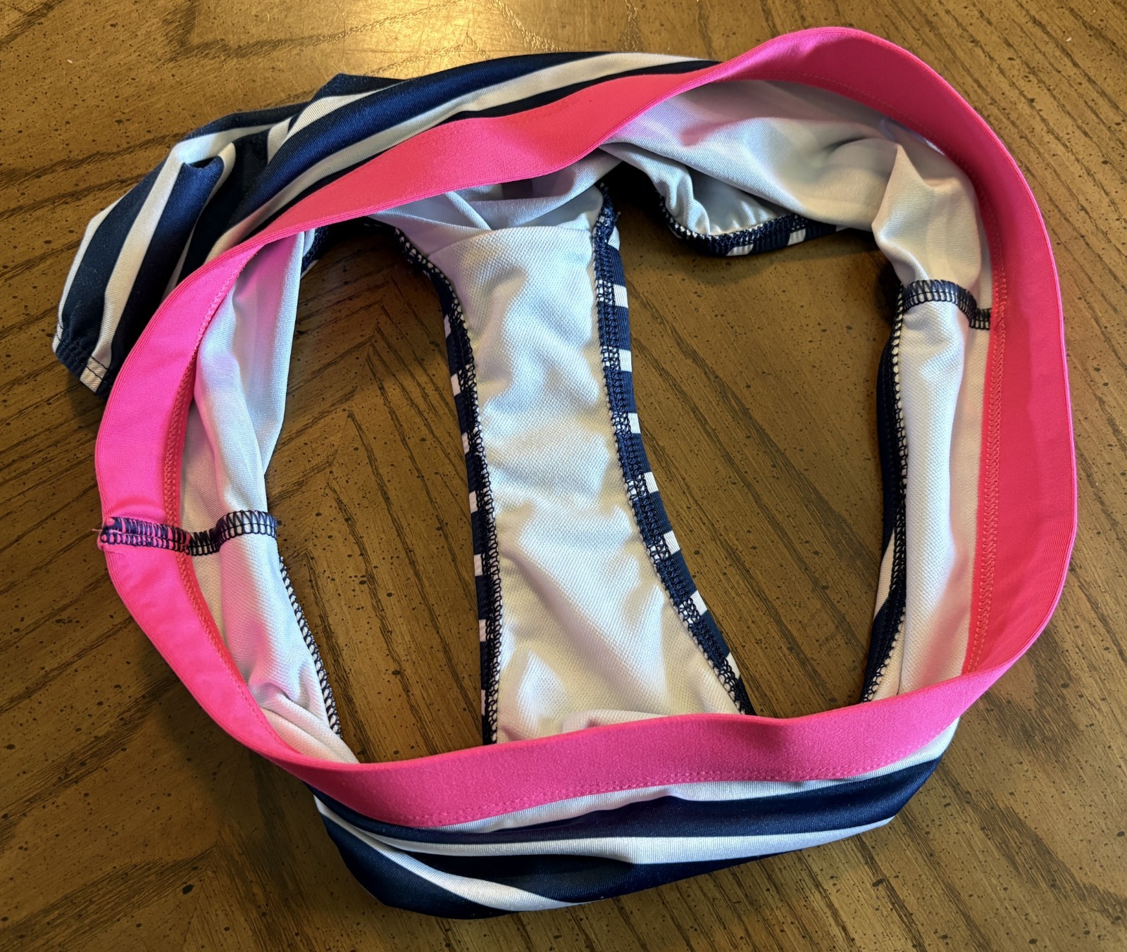 как выглядит Lands End Girls Pink/Navy/White Bikini Top and Bottoms UPF 50 Swimsuit, Size 14 фото