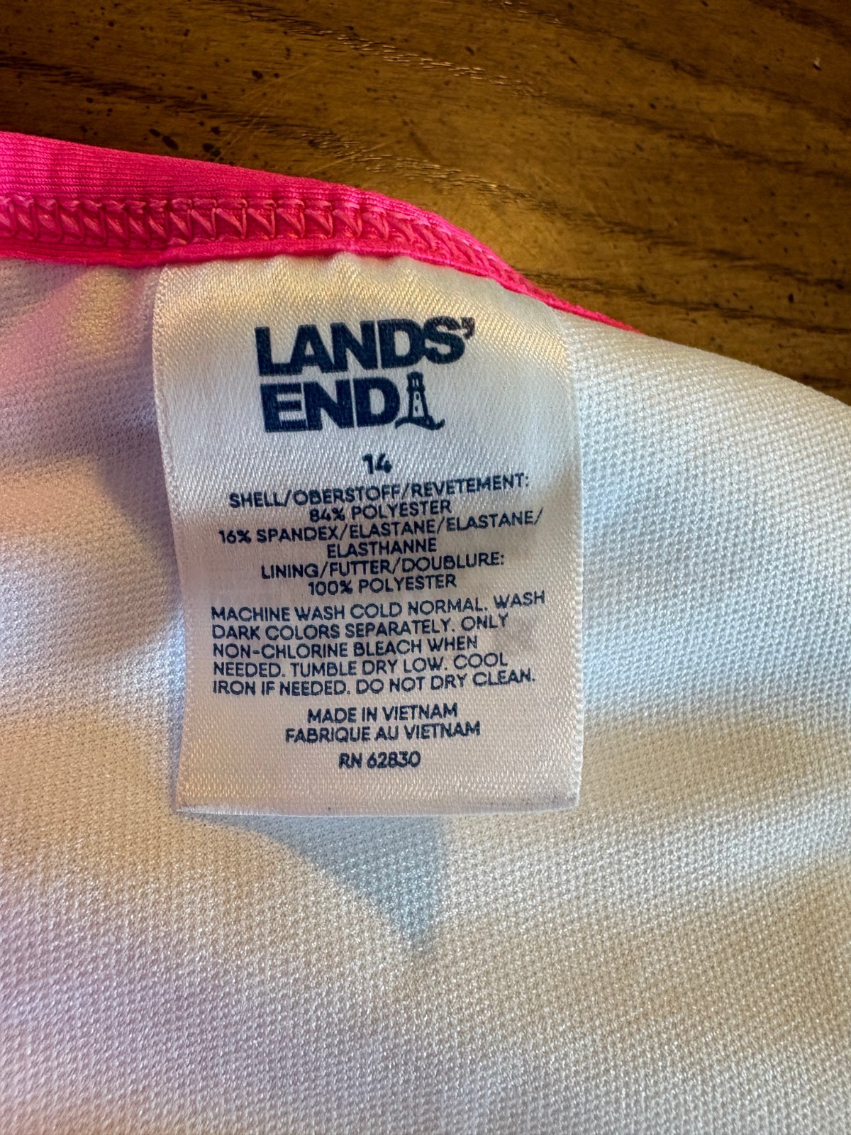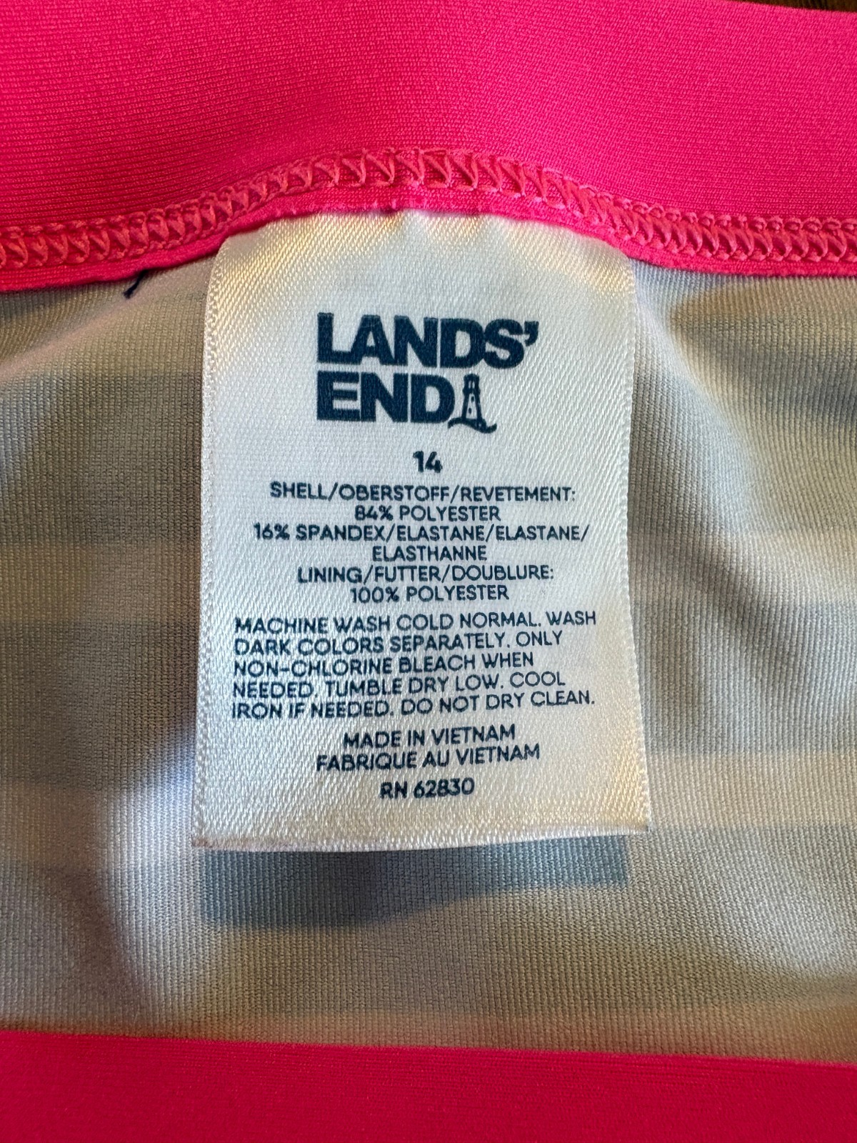 Lands' End Girls Pink/Navy/White Bikini Top and Bottoms UPF 50 Swimsuit, Size 14